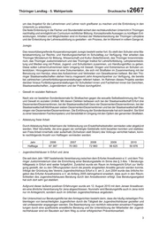 Drucksache 5/ 2667 Thüringer Landtag - 5. Wahlperiode quote und ihre Struktur benennen? In wie vielen Fällen wurde seit dem Jahr 2006 die Aussetzung zur Bewährung widerrufen (bitte in Jahresscheiben aufschlüsseln)? Wie sind etwaige signifikante Änderun- gen der Widerrufszahlen zu bewerten? 5. Welche Chancen haben Betroffene - gegebenenfalls abhängig von der Haftdauer - nach der Entlassung aus der Justizvollzugsanstalt wieder im Alltag Fuß zu fassen, insbesondere eine Arbeit und eine Woh- nung zu finden und gibt es hier geschlechterspezifische Unterschiede bzw. Unterschiede nach Delikts- gruppen? Wie hat sich hier die Situation seit dem Jahr 2006 verändert? Welche wissenschaftlichen For- schungsergebnisse gibt es zu diesen Aspekten, insbesondere mit Bezug auf Thüringen? 6. Inwiefern ist mit Schaffung eines Kriminologischen Dienstes für Thüringen auch eine kontinuierliche For- schung zu Prävention, Nachsorge, Übergang aus Haft und Rückfallproblematik geplant? Welche weite- ren Einrichtungen und Organisationen sollen für diese Aktivitäten herangezogen werden? Das Thüringer Justizministerium hat die Kleine Anfrage namens der Landesregierung mit Schreiben vom 2. Mai 2011 wie folgt beantwortet: Zu 1.: Folgende Maßnahmen und Projekte gibt es, die der Vermeidung von Straftaten und damit (indirekt) der Ver- meidung von Verfahren dienen, bei denen freiheitsentziehende Sanktionen verhängt werden: - Jugendstationen Gera/Jena/Saale-Holzland-Kreis Seit September 2000 betreibt die Staatsanwaltschaft Gera das Modellprojekt "Jugendstation Gera". Die Jugendstation ist mit zwei Staatsanwältinnen, zwei Geschäftsstellenbeamten/-beamtinnen, sechs Polizeibeamten/-beamtinnen und drei Mitarbeitern/Mitarbeiterinnen der Jugendgerichtshilfe besetzt. Die positiven Erfahrungen in Gera waren einer der maßgeblichen Gründe dafür, dass eine zweite Ju- gendstation errichtet wurde. Die Jugendstation Gera diente als Vorbild für die am 21. März 2011 in Jena eröffnete "Jugendstation Jena/Saale-Holzland-Kreis". Die Jugendstation ist nicht nur für die Stadt, son- dern ebenfalls für einen umliegenden Landkreis zuständig. Die dreijährige Erprobungsphase wird zei- gen, wie sich der territoriale Zuschnitt bewährt. Die Jugendstation ist mit zwei Staatsanwältinnen, zwei Geschäftsstellenbeamten/-beamtinnen, fünf Polizeibeamten/-beamtinnen und sechs Mitarbeitern/Mitarbeiterinnen der Jugendgerichtshilfe besetzt. - Krisen-Interventions-Projekt (KIP) in Jena Das Krisen-Interventions-Projekt (KIP) in Jena, welches seit 2001 federführend vom Thüringer Innenmi- nisterium mit Unterstützung des Thüringer Justizministeriums begleitet wird, besteht nach wie vor fort. Es verfolgt eine spezialpräventive Zielstellung. Die behördenübergreifende Kooperation zwischen Jugend- amt, Polizei und Staatsanwaltschaft unterbreitet Kindern, Jugendlichen und Heranwachsenden, die in die Begehung von Straftaten verwickelt sind, zeitnah Beratungs- und Hilfeangebote. Durch die schnelle und pädagogisch sinnvolle Reaktion der Kooperationspartner soll weiterem delinquentem Verhalten von Jugendlichen und Heranwachsenden entgegengewirkt werden. Die hieraus gewonnenen Erfahrungen trugen auch zu dem Wunsch bei, in Jena eine eigene Jugendstation einzuführen. Das Krisen-Interven- tions-Projekt ist nun mit in den Räumlichkeiten der Jugendstation in Jena/Saale-Holzland-Kreis zu finden. - Thüringer Schulprojekte für Gewaltprävention Rechtskundeunterricht Nach wie vor unterstützt das Thüringer Justizministerium den rechtskundlichen Unterricht an Thüringer Schulen. An allen Gerichten und bei allen Staatsanwaltschaften gibt es Rechtskundebeauftragte, die als Ansprechpartner für Schulen und Bildungseinrichtungen zur Verfügung stehen. Durch den rechtskundlichen Unterricht und den Besuch von Gerichtsverhandlungen kann und soll das Vertrauen der Schüler in den Rechtsstaat wachsen, verbunden mit der Achtung der Rechte anderer und zur Entwicklung von Zivilcourage, um selbstbewusst für eigene Rechte und die Rechte Dritter einzutre- ten und damit letztlich Gewalttendenzen zu begegnen. Im Jahr 2010 wurde durch das Thüringer Justizministerium in Abstimmung mit dem Thüringer Ministeri- um für Bildung, Wissenschaft und Kultur und dem Thüringer Institut für Lehrerfortbildung, Lehrplanent- wicklung und Medien eine Themen- und Referentenliste für den rechtskundlichen Unterricht erarbeitet, 2