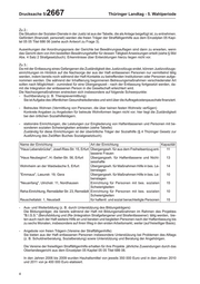 Drucksache 5/ 2667 Thüringer Landtag - 5. Wahlperiode Zu 2.: Die Situation der Sozialen Dienste in der Justiz ist aus der Tabelle, die als Anlage beigefügt ist, zu entnehmen. Gefördert (finanziell, personell) werden die freien Träger der Straffälligenhilfe aus dem Einzelplan 05 Kapi- tel 05 05 Titel 686 06 (siehe auch Antwort zu Frage 3). Auswirkungen der Anordnungspraxis der Gerichte bei Bewährungsauflagen sind dann zu erwarten, wenn das Gericht dem von ihm bestellten Bewährungshelfer für dessen Tätigkeit Anweisungen erteilt (siehe § 56d Abs. 4 Satz 2 Strafgesetzbuch). Erkenntnisse über Entwicklungen hierzu liegen nicht vor. Zu 3.: Da mit der Entlassung eines Gefangenen die Zuständigkeit des Justizvollzugs endet, können Justizvollzugs- einrichtungen im Hinblick auf die Nachsorge der aus der Haft entlassenen Personen nur vermittelnd tätig werden, indem bereits noch während der Haft Kontakte zu betreffenden Institutionen oder Personen aufge- nommen werden. Die während der Inhaftierung begonnenen Betreuungsmaßnahmen verschiedenster Art sollen nach Möglichkeit - zumindest für eine Übergangszeit - nach der Entlassung fortgesetzt werden, da- mit die Integration der entlassenen Person in die Gesellschaft erleichtert wird. Die Nachsorgemaßnahmen erstrecken sich insbesondere auf folgende Schwerpunkte: - Suchtberatung (z. B. Therapievermittlung) Sie ist Aufgabe des öffentlichen Gesundheitsdienstes und wird über die Auftragskostenpauschale finanziert. - Betreutes Wohnen (Vermittlung von Personen, die über keinen festen Wohnsitz verfügen) Konkrete Angaben zu Angeboten für betreute Wohnformen liegen nicht vor; hier liegt die Zuständigkeit bei den örtlichen Sozialhilfeträgern. - stationäre Einrichtungen, die Leistungen zur Eingliederung von Haftentlassenen und Personen mit be- sonderen sozialen Schwierigkeiten anbieten (siehe Tabelle) Zuständig für diese Einrichtungen ist der überörtliche Träger der Sozialhilfe (§ 4 Thüringer Gesetz zur Ausführung des Zwölften Buches Sozialgesetzbuch). Name der Einrichtung Art der Einrichtung Kapazität "Haus Lebensbrücke", Josef-Ries-Str. 15, Erfurt Übergangswh. für aus dem Freiheitsentzug ent- 11 lassene Frauen "Haus Neubeginn", H.-Seiler-Str. 56, Erfurt Übergangswh. für Haftentlassene und Nicht- 13 sesshafte Wohnheim an der Waidwäsche 5, Erfurt Übergangswh. für Maßnahmen Hilfe in bes. Le- 14 benslagen "Emmaus", Lasurstr. 19, Gera Übergangswh. für Maßnahmen Hilfe in bes. Le- 10 benslagen "Neuanfang", Ulrichstr. 11, Nordhausen Einrichtung für Personen mit bes. sozialen 15 Schwierigkeiten Reha-Einrichtung, Remstädter Str. 23, Remstädt Einrichtung für Personen mit bes. sozialen 10 Schwierigkeiten Reuscheltalstr. 1, Neustadt für haftentl. und sozial benachteiligte Personen 15 - Aus- und Weiterbildung (z. B. durch Unterstützung des Bildungsträgers) Die Bildungsträger, die bereits während der Haft mit Bildungsmaßnahmen im Rahmen des Projektes "B.I.S.S." (Berufsbildung und (Re-)Integration Strafgefangener und Strafentlassener) tätig werden, bie- ten auch nach der Haft weitere Hilfe an und beraten und begleiten Personen nach der Haftentlassung bis zu sechs Monaten, insbesondere auf ihren Weg in den ersten Arbeitsmarkt, weiter (auf freiwilliger Basis). - Angebote von freien Trägern (Vereine der Straffälligenhilfe) Sie bieten aus der Haft entlassenen Personen insbesondere Unterstützung bei Problemen des Alltags (z. B. Schuldnerberatung, Sozialberatung) sowie Unterstützung und Beratung der Angehörigen. Die Vereine der freiwilligen Straffälligenhilfe erhalten für ihre Projekte jährliche Zuwendungen durch das Oberlandesgericht aus dem Einzelplan 05 Kapitel 05 05 Titel 686 06. In den Jahren 2006 bis 2009 wurden Hauhaltsmittel von jeweils 350 000 Euro und in den Jahren 2010 und 2011 von je 400 000 Euro etatisiert. 4