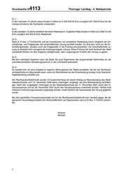 Drucksache 4/ 4113 Thüringer Landtag - 4. Wahlperiode Zu 1.: In den nächsten 15 Jahren wären Kosten in Höhe von 4 290 549,20 Euro zuzüglich 541 509,23 Euro für die Inanspruchnahme der Kaufoption entstanden. Zu 2.: In den nächsten 15 Jahren entstehen bei einem Ratenkauf in 15 gleichen Raten Kosten in Höhe von 5 802 514,20 Euro zuzüglich 455 050,50 Euro Restschuld. Zu 3.: Nach § 10 Abs. 2 ThürGemHV soll bei Investitionen von erheblicher Bedeutung durch Vergleich der An- schaffungs- und Folgekosten die wirtschaftlichste Lösung ermittelt werden. Es sind also nicht nur die An- schaffungskosten, sondern auch die Folgekosten in die Prüfung einzubeziehen. Die wirtschaftlichste Lö- sung ist deshalb nicht zwingend die kostengünstigste Lösung. Diese Prüfung hat nach Auskunft der Stadt Leinefelde-Worbis mit dem Ergebnis stattgefunden, dem vorgezogenen Erwerb den Vorzug zu geben. Zu 4.: Mit dem sofortigen Eigentum kann die Stadt, die auch Eigentümer des angrenzenden Bahnhofes ist, ein zukunftsorientiertes Verwaltungszentrum in der Innenstadt entwickeln. Zu 5.: Es handelt sich um eine Aufgabe im eigenen Wirkungskreis der Stadt-Leinefelde, bei der die Rechtsauf- sichtsbehörde nur tätig werden kann, wenn ein Rechtsfehler bei der Entscheidung vorliegt. Eine Zweckmä- ßigkeitsprüfung scheidet aus. Der Rechtsaufsichtsbehörde wurden im Zusammenhang mit einem Antrag auf Beanstandung des Stadt- ratsbeschlusses vom 10. Dezember 2008 keine Unterlagen vorgelegt, die eine Beanstandung rechtferti- gen. Nach den vorgelegten Unterlagen ist der Stadtratsbeschluss am 11. November 2007 durch den Fi- nanzausschuss und am 26. November 2007 durch den Hauptausschuss vorbereitet worden. Hierbei sind mehrere Finanzierungsvarianten aufgezeigt worden, wobei letztlich der Kaufvariante der Vorzug gegeben wurde. Bei dem gewählten Finanzierungsmodell war für die Rechtsaufsichtsbehörde kein Verstoß gegen die all- gemeinen Haushaltsgrundsätze der Wirtschaftlichkeit und Sparsamkeit nach § 53 Abs. 2 ThürKO erkenn- bar. Scherer Minister 2