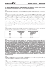 Thüringer LandTag 5. Wahlperiode Drucksache 5/ 4341 20.04.2012 Kleine Anfrage der Abgeordneten Schubert (BÜNDNIS 90/DIE GRÜNEN) und Antwort des Thüringer Ministeriums für Bau, Landesentwicklung und Verkehr Verwendung der GVFG-Mittel Die Kleine Anfrage 2194 vom 1. März 2012 hat folgenden Wortlaut: Ehemalige Mittel des Gesetzes über Finanzhilfe des Bundes zur Verbesserung der Verkehrsverhältnisse der Gemeinden (Gemeindeverkehrsfinanzierungsgesetz - GVFG) werden vom Bund nach dem Gesetz zur Ent- flechtung von Gemeinschaftsaufgaben und Finanzhilfen (Entflechtungsgesetz - EntflechtG) weiterhin an die Länder ausgegeben. Thüringen erhält derzeit ca. 50 Millionen Euro pro Jahr über das Landesprogramm. Wei- tere Mittel erhalten die Länder für Großprojekte aus den Mitteln des ehemaligen GVFG-Bundesprogramms. Für den Bereich des öffentlichen Personennahverkehrs (ÖPNV) wurden in den letzten Jahren jeweils 25 Mil- lionen Euro investiert. Unter anderem auch in Busse. Laut Investitionsrichtlinie dürfen diese bis zu 25 Pro- zent außerhalb des Linienverkehrs genutzt werden. Ich frage die Landesregierung: 1. Für jeweils welche Vorhaben und in welcher Höhe wurden die Mittel des GVFG-Landesprogramms in den letzten zehn Jahren eingesetzt (bitte in Jahresscheiben und nach Landkreis/kreisfreier Stadt/Ge- meinde aufführen)? 2. Wie hoch war jeweils der Finanzierungsanteil von Land bzw. Kommune? 3. Wie hoch war das Volumen der insgesamt gestellten Anträge im Vergleich zu den Bewilligungen? 4. Nach welchem Prozedere verläuft das Verfahren vom Antrag bis zur Bewilligung der Mittel? 5. Welche Mittel des GVFG-Bundesprogramms wurden in den letzten zehn Jahren in Thüringen für welche Vorhaben eingesetzt? 6. Wie rechtfertigt die Landesregierung die Wettbewerbsverzerrung durch den erlaubten Anteil an Fahrten außerhalb des Linienverkehrs in Höhe von 25 Prozent, die mit geförderten Bussen durchgeführt werden können gegenüber nicht geförderten Bussen? 7. Gab es bezüglich der Busförderung in den letzten zehn Jahren Beschwerden oder Rechtsstreitigkeiten? Falls ja, welche Gründe hatten diese und wie wurden diese beigelegt? Druck: Thüringer Landtag, 30. April 2012