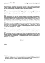 Thüringer LandTag 5. Wahlperiode Drucksache 5/ 1748 01.11.2010 Kleine Anfrage des Abgeordneten Recknagel (FDP) und Antwort des Thüringer Finanzministeriums Ist der Betrieb von Warenverkaufsautomaten eine Landesaufgabe? Die Kleine Anfrage 917 vom 15. September 2010 hat folgenden Wortlaut: In den Beratungen zum Haushalt des Jahres 2010 stellte sich heraus, dass der Freistaat Thüringen teilwei- se hohe Summen für die Anschaffung von Kleingeräten wie Kaffeemaschinen ausgibt. Beispielgebend sei der Haushaltstitel 04 22/812 02 für das Thüringer Institut für Lehrerfortbildung, Lehrplanentwicklung und Medien genannt. Ich frage die Landesregierung: 1. Wie viele Kaffeemaschinen, Waren- und Getränkeverkaufsautomaten (Heiß- und Kaltgetränke) mit wel- chen Anschaffungswerten (nur Geräte ab 400 Euro) besitzt das Land zurzeit (bitte Auflistung nach Typ, Geräteart, Anschaffungswert, Datum der Inbetriebnahme, Aufstellort [Ministerium, Landesbehörde]; für Geräte in Leasing oder Miete bitte auch Vertragslaufzeit und monatliche Rate angeben)? 2. Nach welchen Kriterien erfolgt die Auswahl der Geräte? Wie lang ist die vorgesehene Nutzungsdauer der Geräte? 3. Wie viele Geräte welchen Typs (Hersteller, Geräteart, Größenklasse) und welchen Preises werden in den Jahren 2010 und 2011 noch angeschafft (bitte Auflistung nach Ministerien und Landesbehörden)? 4. Wie hoch waren die jeweiligen Einnahmen in den Haushaltsjahren 2008, 2009, 2010 aus dem Verkauf von Waren und Getränken aus Kaffeemaschinen, Waren- und Getränkeverkaufsautomaten oder aus der Verpachtung an Dritte? 5. Wie hoch waren die jeweiligen Betriebskosten, aufgeschlüsselt nach Personal, Wartung, Reparatur, Ener- gie, Verbrauchsmaterial, Versicherung, sonstige Kosten? 6. Wurde jeweils eine Wirtschaftlichkeitsberechnung durchgeführt, ggf. unter Prüfung der Möglichkeit, die Geräte von einem Geräteaufsteller bereitstellen zu lassen? Mit welchem Ergebnis? Wie viele Fremdge- räte von Geräteaufstellern gibt es in den Ministerien und Landesbehörden? Das Thüringer Finanzministerium hat die Kleine Anfrage namens der Landesregierung mit Schreiben vom 29. Oktober 2010 wie folgt beantwortet: Zu 1.: Das Land besitzt derzeit 29 eigene Kaffeemaschinen, wovon ein Großteil für die Kantinen angeschafft wur- de. Daneben besitzt das Land zwei eigene Warenverkaufsautomaten und fünf eigene Getränkeverkaufs- automaten mit einem Anschaffungswert ab 400 Euro. Druck: Thüringer Landtag, 10. November 2010