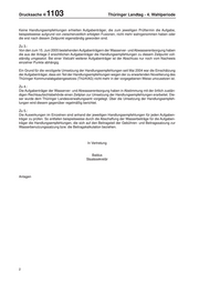 Drucksache 4/ 1103 Thüringer Landtag - 4. Wahlperiode Keine Handlungsempfehlungen erhielten Aufgabenträger, die zum jeweiligen Prüftermin die Aufgabe, beispielsweise aufgrund von zwischenzeitlich erfolgten Fusionen, nicht mehr wahrgenommen haben oder die erst nach diesem Zeitpunkt eigenständig geworden sind. Zu 3.: Von den zum 15. Juni 2005 bestehenden Aufgabenträgern der Wasserver- und Abwasserentsorgung haben die aus der Anlage 2 ersichtlichen Aufgabenträger die Handlungsempfehlungen zu diesem Zeitpunkt voll- ständig umgesetzt. Bei einer Vielzahl weiterer Aufgabenträger ist der Abschluss nur noch vom Nachweis einzelner Punkte abhängig. Ein Grund für die verzögerte Umsetzung der Handlungsempfehlungen seit Mai 2004 war die Einschätzung der Aufgabenträger, dass ein Teil der Handlungsempfehlungen wegen der zu erwartenden Novellierung des Thüringer Kommunalabgabengesetzes (ThürKAG) nicht mehr in der vorgegebenen Weise umzusetzen ist. Zu 4.: Die Aufgabenträger der Wasserver- und Abwasserentsorgung haben in Abstimmung mit der örtlich zustän- digen Rechtsaufsichtsbehörde einen Zeitplan zur Umsetzung der Handlungsempfehlungen erarbeitet. Die- ser wurde dem Thüringer Landesverwaltungsamt vorgelegt. Über die Umsetzung der Handlungsempfeh- lungen wird diesem gegenüber regelmäßig berichtet. Zu 5.: Die Auswirkungen im Einzelnen sind anhand der jeweiligen Handlungsempfehlungen für jeden Aufgaben- träger zu prüfen. So entfallen beispielsweise durch die Abschaffung der Wasserbeiträge für die Aufgaben- träger die Handlungsempfehlungen, die sich auf den Beitragsteil der Gebühren- und Beitragssatzung zur Wasserbenutzungssatzung bzw. die Beitragskalkulation beziehen. In Vertretung Baldus Staatssekretär Anlagen 2