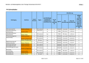 Bachelor- und Masterangebote an den Thüringer Hochschulen WS 2010/11 Anlage 1 FH Schmalkalden Akkreditierung Auflagen ja (j)/ grundständig (g) ja,wurden Anzahl konsekutiv (k) neu (n) erfüllt (j+)/ Studiengang Abschluss Beginn Semester postgradual (p) oder Erst- Dauer der ja, wurden weiterbildend (w) umgestellt Agentur akkreditierung Akkreditierung noch nicht (u) erfüllt (j-)/ keine (n) durchgefallen (d) Sportmanagement Master of Business 5 WS 2009/10 w n FIBAA 17.11.2009 01.08.2015 Administration j+ WS 2010/11 7 g u FIBAA WS 2010/11 01.08.2015 VWL Bachelor of Arts j- Bachelor 15 Master 7 Seite 42 von 43 Stand: 01.11.2010