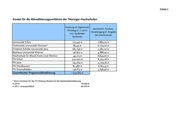 Anlage 3 Kosten für die Akkreditierungsverfahren der Thüringer Hochschulen Zahlung an Agenturen durchschn. Kosten/ Stichtag 31.11.2010 Studiengang lt. Angabe incl. laufender der Hochschule Verfahren Universität Erfurt 173.340 € 2.889,00 € Technische Universität Ilmenau* 85.533 € 6.109,00 € Friedrich-Schiller-Universität Jena 283.796 € 3.380,00 € Bauhaus-Universität Weimar 136.822 € 4.886,50 € Hochschule für Musik Franz Liszt Weimar 44.215 € 8.843,00 € FH Erfurt 232.000 € 8.923,08 € FH Jena 145.064 € 4.029,56 € FH Nordhausen 82.480 € 6.873,33 € FH Schmalkalden 146.613 € 5.638,96 € Gesamtkosten Programmakkreditierung 1.329.863 € * hinzu kommen für die TU Ilmenau Kosten für die Systemakkreditierung in 2010 16.050 € in 2011 voraussichtlich 54.570 €
