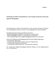 Anlage 4 Entwicklung der mittleren Fachstudiendauer an den Thüringer Hochschulen seit dem Jahr 1999 nach Fächergruppen Die Entwicklung der mittleren Fachstudiendauer an den einzelnen Thüringer Hochschulen nach Fächergruppen seit dem Jahr 1999 ist in den beigefügten Übersichten dargestellt. Die Regelstudienzeiten betragen gemäß § 46 ThürHG für: - Bachelor-Studiengänge mindestens 6 und höchstens 8 Fachsemester, - Master-Studiengänge mindestens 2 und höchstens 4 Fachsemester, - noch vorhandene Diplom- bzw. Magisterstudiengänge höchstens 9 Fachsemester sowie für die Staatsexamensstudiengänge gemäß den jeweils gültigen Regelungen: - 8 Fachsemester (Pharmazie), - 9 Fachsemester (Rechtswissenschaften, Lehramt an Regelschulen), - 10 Fachsemester (Lehramt an Gymnasien), - 11 Fachsemester (Zahnmedizin) bzw. 12,5 Fachsemester (Medizin). Der modularisierte Magister-Studiengang Katholische Religion hat eine Regelstudienzeit von 10 Fachsemestern.