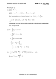 M LK HT B2 GTR (GG) Ministerium für Schule und Bildung NRW Seite 3 von 7 Teilaufgabe b) (1) f1 ( x ) = x − 3 ⋅ x . 3 GTR f1 ( x ) = 0 [⇔ x − 3 ⋅ x = 0] ⇔ x = − 3 ∨ x = 0 ∨ x = 3 . 3 1 4 3 2 Eine Stammfunktion von f1 ist die Funktion F1 mit F1 ( x ) = ⋅ x − ⋅ x . 4 2 0 ( − 3 f1 ( x ) dx = F1 ( x ) − ) 9 = F1 ( 0 ) − F1 − 3 = = 2,25 . 4 0 3 Der Inhalt der Fläche, die für x ≤ 0 vom Graphen von f1 und der x-Achse eingeschlossen wird, beträgt 2,25 FE. 0 (2) I a = f x − a ⋅ x d x ( ) ( ) 1 − a+3 0 = x ( 3 − a+3 0 = x ( − a+3 3 − 3 ⋅ x − a ⋅ x ) dx − ( 3 + a ) ⋅ x ) dx 0 1 4 3 + a 2 = ⋅x − ⋅x 2 4 − 1 = − ⋅ − a + 3 4 ( 1 (3) − ⋅ − a + 3 4 ( ) 4 ) 4 a+3 2 3+a − ⋅ − a+3 . 2 ( ) GTR 2 3+a − ⋅ − a + 3 = 2,25 : 2 a ≈ − 0,88 . 2 ( ) 3⋅ 2 [genauer Wert: a = − 3 ]. 2 Abiturprüfung 2019 – Nur für den Dienstgebrauch!
