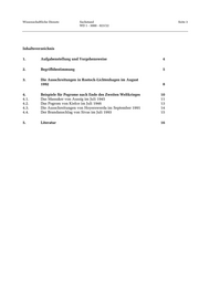 Wissenschaftliche Dienste Sachstand Seite 3 WD 1 - 3000 - 023/22 Inhaltsverzeichnis 1. Aufgabenstellung und Vorgehensweise 4 2. Begriffsbestimmung 5 3. Die Ausschreitungen in Rostock-Lichtenhagen im August 1992 8 4. Beispiele für Pogrome nach Ende des Zweiten Weltkrieges 10 4.1. Das Massaker von Aussig im Juli 1945 11 4.2. Das Pogrom von Kielce im Juli 1946 13 4.3. Die Ausschreitungen von Hoyerswerda im September 1991 14 4.4. Der Brandanschlag von Sivas im Juli 1993 15 5. Literatur 16