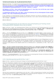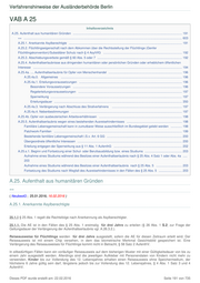 Verfahrenshinweise der Ausländerbehörde Berlin VAB A 25 Inhaltsverzeichnis A.25. Aufenthalt aus humanitären Gründen .............................................................................................................................. 191 == ....................................................................................................................................................................................... 603 A.25.1. Anerkannte Asylberechtigte ................................................................................................................................... 191 A.25.2. Flüchtlingseigenschaft nach dem Abkommen über die Rechtsstellung der Flüchtlinge (Genfer Flüchtlingskonvention)/Subsidiärer Schutz nach § 4 AsylVfG ........................................................................................... 192 A.25.3. Abschiebungsverbote gemäß § 60 Abs. 5 oder 7 .................................................................................................. 192 A.25.4. Aufenthaltserlaubnisse aus dringenden humanitären oder persönlichen Gründen oder erheblichem öffentlichen Interesse ............................................................................................................................................................................ 194 A.25.4a. .... Aufenthaltserlaubnis für Opfer von Menschenhandel ..................................................................................... 196 A.25.4a.0. Allgemeines ............................................................................................................................................ 196 A.25.4a.1. Erteilungsvoraussetzungen ....................................................................................................................... 196 Besondere Voraussetzungen .............................................................................................................................. 196 Regelerteilungsvoraussetzungen ........................................................................................................................ 197 Sperrwirkung ........................................................................................................................................................ 197 Erteilungsdauer .................................................................................................................................................... 350 A.25.4a.3. Verlängerung nach Abschluss des Strafverfahrens ................................................................................. 197 A.25.4a.4. Nebenbestimmungen ................................................................................................................................ 197 A.25.4b. Opfer von ausbeuterischen Arbeitsverhältnissen ................................................................................................ 198 A.25.5. Aufenthaltserlaubnis wegen eines bestehenden Ausreisehindernisses ................................................................ 198 Familiäre Lebensgemeinschaft kann in zumutbarer Weise ausschließlich im Bundesgebiet gelebt werden ............. 198 Patchwork-Familien .................................................................................................................................................... 199 Bestehende familiäre Lebensgemeinschaft i.S.v. Art. 6 GG ....................................................................................... 200 Übergeordnete öffentliche Interessen ......................................................................................................................... 200 Erteilung entgegen der Sperrwirkung aus § 11 Abs. 1 AufenthG ............................................................................... 202 A.25.s.1. Beginn und Fortsetzung einer Schul- oder Berufsausbildung bzw. eines Studiums ........................................... 203 Aufnahme eines Studiums während des Besitzes einer Aufenthaltserlaubnis nach § 25 Abs. 4 Satz 1 oder Abs. 4a ..... 203 Aufnahme eines Studiums während des Besitzes einer Aufenthaltserlaubnis nach § 25 Abs. 5 .............................. 203 Fortsetzung des Studiums nach Wegfall des Ausreisehindernisses in den Fällen des § 25 Abs. 5 ........................... 203 A.25. Aufenthalt aus humanitären Gründen == ( NeubestG ; 25.01.2016; 16.02.2016 ) A.25.1. Anerkannte Asylberechtigte 25.1.0 § 25 Abs. 1 regelt die Rechtsfolge nach Anerkennung als Asylberechtigter. 25.1.1. Die AE ist in den Fällen des § 25 Abs. 1 erstmalig für drei Jahre zu erteilen (§ 26 Abs. 1 S.2; zur Frage der Geltungsdauer der Verlängerung der Aufenthaltserlaubnis vgl. A.26.3.2.). Reiseausweise für Flüchtlinge werden für drei Jahre ausgestellt, sofern die AE für diesen Zeitraum erteilt wird. Der Reiseausweis ist mit einem Chip versehen, in dem das biometrische Merkmal Gesichtsbild gespeichert ist. Eine Verlängerung des Reiseausweises für Flüchtlinge kommt nicht in Betracht, § 58 Satz 2 AufenthV. In eilbedürftigen Fällen kann ein vorläufiger Reiseausweis auf dem bisherigen Muster mit einer Gültigkeitsdauer von bis zu einem Jahr ausgestellt werden. Allerdings sind die jeweiligen Aufkleber mit Personendaten von Kindern nicht mehr zu verwenden. Kinder bis zur Vollendung des 12. Lebensjahres erhalten einen Reiseausweis ohne Speichermedium, der höchstens 6 Jahre gültig sein darf, längstens jedoch bis zur Vollendung des 12. Lebensjahres, § 4 Abs. 1 Satz 3 und 4 AufenthV. Dieses PDF wurde erstellt am: 22.02.2016 Seite 191 von 735