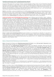 Verfahrenshinweise der Ausländerbehörde Berlin Hier wird der Erteilung des Visums zur Einreise regelmäßig zum voraussichtlichen Geburtstermin – frühestens jedoch 4 Wochen vor dem errechneten Termin - zugestimmt. Eine frühere Einreise kommt in diesen Fällen schon auf Grund der besonderen Bedeutung des Erfordernisses einfacher Sprachkenntnisse für eine erfolgreiche Integration nur in Betracht, wenn die Schwangere – z.B. wegen attestierten Vorliegens einer Risikoschwangerschaft – in besonderer Weise auf den Beistand des Ehemannes angewiesen ist. In diesen Fällen wird der Erteilung des Visums zur Einreise in der Regel frühestens ab dem vierten Schwangerschaftsmonat zugestimmt. Nachzug einer Schwangeren, die die Voraussetzungen für den Ehegattennachzug gem. § 28 Abs. 1 S. 5 i.V.m. § 30 Abs. 1 S. 1 Nr. 1 und 2 nicht erfüllt, zu ihrem deutschen Ehepartner: In diesen Fällen wird der Erteilung des Visums zur Einreise in der Regel frühestens ab dem vierten Schwangerschaftsmonat zugestimmt. Zur Prüfung durch die zuständige deutsche Auslandsvertretung ist eine geeignete ärztliche Bescheinigung vorzulegen, die insbesondere auch eine Aussage zum voraussichtlichen Geburtstermin beinhaltet. Nachzug eines Mannes nach Anerkennung der Vaterschaft und Abgabe einer gemeinsamen Sorgeerklärung zu einer Schwangeren, die entweder die deutsche Staatsangehörigkeit besitzt oder zum Zeitpunkt des voraussichtlichen Geburtstermins nach acht Jahren rechtmäßigem Aufenthalt im Bundesgebiet ein unbefristetes Aufenthaltsrecht oder eine Aufenthaltserlaubnis aufgrund des Freizügigkeitsabkommens mit der Schweiz besitzt (vgl. § 4 Abs. 3 StAG; zur Berechnung vgl. VAB.G.XVIII): Die Zustimmung zur Erteilung eines Visums erfordert zwingend den Nachweis - regelmäßig durch eine zeitgleiche Befragung der werdenden Eltern -, dass eine sozial-familiäre Beziehung zwischen dem werdenden Vater und dem Kind aufgenommen werden wird. Nachzug einer Schwangeren zu einem deutschen Staatsangehörigen, der die Vaterschaft für das werdende Kind anerkannt hat. Auch in diesen Fällen wird der Erteilung des Visums zur Einreise in der Regel frühestens ab dem vierten Schwangerschaftsmonat zugestimmt. Der Nachweis einer künftigen sozialen familären Beziehung sowie die Abgabe einer gemeinsamen Sorgeerklärung sind nicht erforderlich. Wird nach der Einreise mit einem D-Visum vor der Geburt ein Antrag auf Erteilung einer Aufenthaltserlaubnis gestellt und ist das Visum abgelaufen, ist eine Fiktionsbescheinigung nach § 81 Abs. 4, Abs. 5 AufenthG bis drei Monate nach dem errechneten Geburtstermin auszustellen. Die Erteilung einer Aufenthalterlaubnis gem. § 28 Abs. 1 S. 1 Nr. 3 kommt erst nach der Geburt und Vorlage einer Geburtsurkunde in Betracht, in die der jeweilige Vater auch als solcher eingetragen ist. Sind Mütter oder Väter von minderjährigen deutschen Kindern ohne ausreichende deutsche Sprachkenntnisse, wird die Aufenthaltserlaubnis gem. § 28 Abs. 1 Nr. 3 aufgrund ihrer besonderen Integrationsbedürftigkeit grundsätzlich lediglich für 13 Monate, bei Kindern unter sechs Monaten für 18 Monate und unter Verpflichtung zur Teilnahme an einem Integrationskurs erteilt. Ist der oder die Betroffene im Besitz eines Reiseausweises für Ausländer, Staatenlose oder Flüchtlinge mit einer Geltungsdauer von bis zu 18 Monaten wird die Geltungsdauer der des Reiseausweises angepasst. Damit wird dem Umstand Rechnung getragen, dass gerade dem Spracherwerb der Eltern für den Bildungserfolg ihrer Kinder erhebliches Gewicht zukommt, und kann das abgestufte Instrumentarium des § 8 Abs. 3 effizienter angewandt werden (vgl. A.8.3.). 28.1.2. frei 28.1.3. Zum Absehen von der Lebensunterhaltssicherung Für den Familiennachzug von Ehegatten zu deutschen Staatsangehörigen wurde durch das 2. Änderungsgesetz ein regelmäßiges Absehen von der Regelerteilungsvoraussetzung der eigenständigen Sicherung des Lebensunterhalts eingefügt, § 28 Abs. 1 S. 3. Nach Nr. 28.1.1.0 AufenthG-VwV kommt es bei Vorliegen besonderer Umstände auf diese Voraussetzung an. Nach den Hinweisen des BMI zum Richtlinienumsetzungsgesetz vom 2.10.2007 könne die Sicherung des Lebensunterhalts bei Vorliegen besonderer Umstände zur Voraussetzung gemacht werden. Besondere Umstände könnten bei Personen vorliegen, denen die Begründung der ehelichen Lebensgemeinschaft im Ausland zumutbar sei. Dies komme insbesondere bei Deutschen in Betracht , die geraume Zeit im Herkunftsland des Ehegatten gelebt und gearbeitet haben und die Sprache dieses Staates sprechen. Der bloße Umstand dass der deutsche Staatsangehörige noch eine andere Staatsangehörigkeit besitzt, ist für sich genommen dagegen kein Anknüpfungspunkt für eine Prüfung des § 28 Abs. 1 S. 3 (so Mitteilung des BMI vom 02.11.2012). Nach Nr. 28.1.1.1 AufenthG-VwV liegt bei einem begehrten Ehegattennachzug zu Spätaussiedlern ein besonderer Maßstab. Nach der vertriebenenrechtlichen Grundentscheidung, dass Spätaussiedler und ihre Familienangehörigen auf Grund ihres besonderen Kriegsfolgenschicksals in Deutschland Aufnahme finden sollen, sei die Wahrung der ehelichen Lebensgemeinschaft im Ausland nicht zumutbar. Dem ist insoweit zu folgen, als dass der bloße Umstand, dass der Spätaussiedler neben der deutschen auch die Staatsangehörigkeit des Landes, in dem er geboren wurde besitzt und dort geraume Zeit gelebt hat und die Sprache dieses Staates spricht, für sich genommen nie genügen kann, um bei nicht gesichertem Lebensunterhalt den Ehegattennachzug zu versagen. Nach richtiger Auffassung folgt hieraus allerdings nicht, Dieses PDF wurde erstellt am: 22.02.2016 Seite 227 von 735