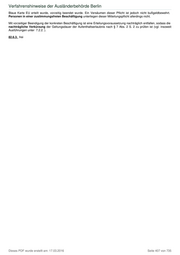 Verfahrenshinweise der Ausländerbehörde Berlin konkreten Erwerbstätigkeit (ggf. mit den Beschränkungen nach § 34 BeschV) formlos auf der Grenzübertrittsbescheinigung (ggf. Rückseite) oder der Bescheinigung L 4048 gesiegelt zu bestätigen. Hierfür ist gem. § 47 Abs. 1 Nr. 9 AufenthV eine Gebühr von 10 Euro zu erheben. § 4 Abs. 2 Satz 2 findet insofern keine Anwendung, da der Aufenthaltstitel selbst nicht fortgilt und dementprechend auch kein Titeletikett ausgestellt werden kann. Zur Befristung von Ausweisungen während gegen die Ausweisung gerichteter Klageverfahren vgl. A.11. 2.1. 84.2.3. frei Dieses PDF wurde erstellt am: 17.03.2016 Seite 410 von 735