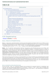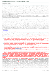 Verfahrenshinweise der Ausländerbehörde Berlin VAB A 30 Inhaltsverzeichnis A.30. Ehegattennachzug ................................................................................................................................. 243 30.1.0. Anspruch auf Ehegattennachzug ................................................................................................ 243 30.1.1.2. erforderliche einfache Sprachkenntnisse ........................................................................... 243 30.1.1.3. Familiennachzug zu Forschern ......................................................................................... 244 30.1.2. Unbeachtlichkeit von Mindestalter und Sprachkenntnissen ............................................... 244 30.1.3. sonstige Unbeachtlichkeit von Sprachkenntnissen ............................................................... 245 Ausländer im Sinne von § 41 AufenthV und Unionsbürger sowie Staatsangehörige des EWR ...... 245 Ausländer bei bestimmten Beschäftigungen ............................................................................. 245 Integrations- und Erwerbstätigkeitsprognose ............................................................................ 245 dauerhaft angelegter Aufenthalt ................................................................................................ 246 Einreise mit deutschen Kindern ................................................................................................. 246 Anspruch auf Ehegattennachzug im Inland ............................................................................... 246 Erfüllung der Voraussetzungen des § 28 Abs. 1 S. 1 Nr. 3 AufenthG ....................................... 246 Besitz eines D-Visums ............................................................................................................... 247 Besondere Umstände des Einzelfalls ........................................................................................ 247 30.2.1. Ehegattennachzug nach Ermessen ..................................................................................... 247 30.3. Verlängerung der Aufenthaltserlaubnis .......................................................................................... 247 Leitlinien für die Ermessensausübung .............................................................................................. 248 Zweifel an der Lebensunterhaltssicherung ...................................................................................... 249 30.4. Mehrehe ......................................................................................................................................... 249 A.30. Ehegattennachzug ( NeubestG ; 20.09.2016; 17.11.2016 ) 30.1.0. Anspruch auf Ehegattennachzug 30.1.1.1. Aufgrund der aufenthaltsrechtlichen Vorwirkung des Schutzgebotes des Artikels 6 GG kann ein mit Blick auf einen konkreten Eheschließungstermin im Bundesgebiet entsprechend langfristig berechnetes Visum zur Einreise auf Grundlage des künftigen Anspruchs nach § 28 Abs. 1 Satz 1 Nummer 1 bzw. § 30 erteilt werden, so die gesetzlichen Voraussetzungen – insbesondere gem. § 30 Abs. 1 S. 1 Nr. 1 und 2 – vorliegen (vgl. Nr. 30.0.2, 30.0.6 AufenthG-VwV) Merke: So der gesicherte Lebensunterhalt überhaupt Voraussetzung des Ehegattennachzugs ist und dieser nach Eheschließung – etwa durch das Einkommen des hier aufhältlichen Ehegatten - hinreichend gesichert ist, bedarf es grundsätzlich nicht der Prüfung wie der Lebensunterhalt des Nachziehenden bis zur Eheschließung gesichert wird oder der Abgabe einer Verpflichtungserklärung des hier aufhältlichen Verlobten. Nach Nr. 30.0.6 AufenthG-VwV muss die Eheschließung unmittelbar bevorstehen. Dies setzt voraus, dass das Anmeldeverfahren beim zuständigen Standesamt abgeschlossen ist und seitdem nicht mehr als sechs Monate vergangen sind. Weiter muss eine Bescheinigung des Standesamts vorliegen, die einen konkreten Eheschließungstermin enthält. Ansonsten wäre nicht prüfbar, ob die Ehe während der Gültigkeit des nationalen Visums geschlossen werden kann. Wird nach der Einreise mit einem D-Visum vor der Eheschließung ein Antrag auf Erteilung einer Aufenthaltserlaubnis gestellt und ist das Visum abgelaufen, ist eine Fiktionsbescheinigung nach § 81 Abs. 4, Abs. 5 AufenthG bis drei Monate nach dem Eheschließungstermin auszustellen. Die Erteilung einer Aufenthalterlaubnis gem. § 28 Abs. 1 S. 1 Nr. 1 kommt erst nach der Eheschließung und Vorlage der Heiratsurkunde in Betracht. Für die Erteilung eines Visums bzw. einer Aufenthaltserlaubnis gem. § 7 Abs. 1 S. 3 zum Zwecke der Eheschließung im Bundesgebiet ist somit kein Raum. 30.1.1.2. erforderliche einfache Sprachkenntnisse Die von § 30 Abs. 1 Satz 1 Nr. 2 geforderte Fähigkeit, sich auf einfache Art in deutscher Sprache zu verständigen, setzt nach dem Urteil des Bundesverwaltungsgerichts vom 30.03.2010 - BVerwG 1 C 8.09 - voraus, dass der Ehegatte über mündliche und schriftliche Grundkenntnisse der deutschen Sprache auf der Stufe A 1 des Gemeinsamen Europäischen Referenzrahmens des Europarats für Sprachen (GER) verfügt. Dieses PDF wurde erstellt am: 05.12.2016 Seite 243 von 747