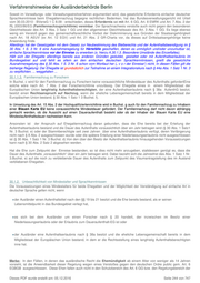 Verfahrenshinweise der Ausländerbehörde Berlin Richtlinie 2003/86/EG betreffend das Recht auf Familienzusammenführung (vgl. Erwägungsgrund 11 der RL, wonach die Familienzusammenführung unter der erforderlichen Achtung, der von den Mitgliedstaaten anerkannten Werte und Grundsätze erfolgen sollte). Wollte man eine andere Auffassung vertreten, würde ein nicht zu lösender Widerspruch zwischen der aufenthaltsrechtlichen Privilegierung durch §§ 27 ff. auf der einen und §§ 176 StGB, der jegliche sexuelle Handlung an Kindern unter vierzehn Jahren unter Strafe stellt, entstehen. Die Anwendung des ausländischen Rechts ist damit in diesen Fällen mit wesentlichen Grundsätzen des deutschen Rechts offensichtlich unvereinbar (Art. 6 EGBGB). 30.1.3. sonstige Unbeachtlichkeit von Sprachkenntnissen Auf die Sprachkenntnisse des Ehegatten kommt es nicht an, wenn der Ausländer im Besitz einer Aufenthaltserlaubnis nach §§ 23 Abs. 4 oder 25 Abs. 1 oder 2 oder einer Niederlassungserlaubnis nach § 26 Abs. 3 oder einer Niederlassungserlaubnis nach § 26 Abs. 4, die nach Besitz einer Aufenthaltserlaubnis aufgrund subsidiären Schutzes erteilt wurde, ist und die Ehe bereits bestand, als der Ausländer seinen Lebensmittelpunkt in das Bundesgebiet verlegt hat, der Ehegatte wegen einer körperlichen, geistigen oder seelischen Krankheit oder Behinderung nicht in der Lage ist, die einfachen Sprachkenntnisse nachzuweisen, wobei Analphabetismus für sich betrachtet keine Erkrankung oder Behinderung darstellt (OVG Berlin-Brandenburg, Beschluss vom 14.11.2008 - OVG 11 S 38.08 -), ein erkennbar geringer Integrationsbedarf des Ehegatten nach § 4 Abs. 2 IntV besteht oder dieser nach Einreise keinen Anspruch nach § 44 hätte insbesondere weil der Aufenthalt nicht auf Dauer angelegt werden soll, der Ausländer nach § 41 AufenthV visumfrei einreisen und einen erforderlichen Aufenthaltstitel im Bundesgebiet einholen kann oder der Ausländer eine Blaue Karte EU besitzt. Unerheblich ist es dabei, wenn die Eheschließung erst erfolgt ist, nachdem der Inhaber der Blauen Karte EU seinen Lebensmittelpunkt in das Bundesgebiet verlegt hat. Ausländer im Sinne von § 41 AufenthV und Unionsbürger sowie Staatsangehörige des EWR Problematisch ist, wie in den Fällen zu verfahren ist, in denen nicht der (hier aufhältliche) Ausländer nach § 41 AufenthV privilegiert ist, sondern lediglich der nachziehende Ehegatte. Der Wortlaut des § 30 Abs. 1 S. 3 Nr. 4 begünstigt den Ehegatten in diesen Fällen ausdrücklich nicht. Dennoch ist der Anwendungsbereich des § 30 Abs. 1 S. 3 Nr. 4 über den Wortlaut hinaus auch auf die nachziehenden Ehegatten zu erstrecken, deren Ehegatten nicht nach § 41 privilegiert sind. Hierfür spricht ...weggefallen... der Zweck des § 41 AufenthV, der -auch auf Grund der besonderen wirtschaftlichen Beziehungen Deutschlands zu diesen Staaten- Erleichterungen beim erstmaligen Erwerb einer Aufenthaltserlaubnis vorsieht. Diese Erleichterung würde konterkariert wollte man diesen Personen, nachdem sie von § 41 AufenthV Gebrauch machen die Erteilung der Erlaubnis versagen bis sie im Bundesgebiet einfache Sprachkenntnisse erworben haben. Von einem erkennbar geringen Integrationsbedarf (vgl. § 44 Abs. 3 S. 1 Nr. 2) ist in der Regel auszugehen, wenn der Ehegatte auf Grund seiner beruflichen Qualifikation (Hochschul- oder FH- Abschluss oder vergleichbare Qualifikation) erwarten lässt, dass er sich auch ohne Integrationskurs in die deutschen Lebensverhältnisse einfügen wird (§ 4 Abs. 2 Nr. 1 1. Alt. IntV). Merke: § 30 Abs. 1 S. 3 Nr. 4 i.V.m. § 11 Abs. 1 S. 5 FreizügG/EU gilt auch für Ehegatten, die als Unionsbürger und Angehörige von EWR- Staaten, die Erteilung einer Aufenthaltserlaubnis nach § 28 Abs. 1 Nr. 1 oder § 30 Abs. 1 begehren, ohne über einfache Sprachkenntnisse zu verfügen. Ausländer bei bestimmten Beschäftigungen Von einem erkennbar geringen Integrationsbedarf kann auch bei bestimmten Beschäftigungen ausgegangen werden. So ist bei Ausländern, die als leitende Angestellte gem. § 3 Nr. 4 BeschV, als Berufssportler gem. § 22 Nr. 4 BeschV, Journalisten im Sinne des § 18 BeschV oder Wissenschaftler, Forscher oder Lehrkräfte gem. § 5 BeschV beschäftigt sind, sowie bei deren Ehegatten von einem erkennbar geringen Integrationsbedarf auszugehen. Dies gilt insbesondere auch für ausländische Geschäftsleute, die vom Hauptsitz eines Unternehmens regelmäßig für maximal 3 Jahre in eine Zweigstelle in Deutschland versetzt werden (§ 10 BeschV), und ihre Ehegatten (Fall des § 4 Abs. 2 Nr. 2 IntV). Auch bei Inhabern einer Aufenthaltserlaubnis gem. § 18, die eine Beschäftigung i.S.v. § 19a Abs. 1 Nr. 1 und 3 ausüben und deren Ehegatten ist von einem geringen Integrationsbedarf auszugehen. Merke: Handelt es sich bei einem im oben beschriebenen Sinne Beschäftigten allerdings um einen deutschen Staatsangehörigen, so ist allein aus diesem Umstand heraus für den Ehegatten nicht von einem geringen Integrationsbedarf auszugehen Integrations- und Erwerbstätigkeitsprognose Nach Nr. 30.1.4.2.3.1 VwV- AufenthG haben wir in jedem Einzelfall im Zustimmungsverfahren zur Visaerteilung Erwägungen zur Integrations- und Erwerbstätigkeitsprognose im Rahmen der Stellungnahme gegenüber der deutschen Auslandsvertretung darzulegen, wenn wir oder die deutsche Auslandsvertretung Anhaltspunkte für einen geringen Integrationsbedarf sehen. Wegen der in Berlin positiven beruflichen Perspektiven für gut qualifizierte Personen mit Migrationshintergrund kann in einem solchen Fall pauschal von einer positiven Integrations- und Erwerbstätigkeitsprognose Dieses PDF wurde erstellt am: 05.12.2016 Seite 245 von 747