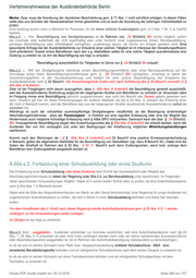 Verfahrenshinweise der Ausländerbehörde Berlin Merke: Zwar muss die Anordnung der räumlichen Beschränkung gem. § 77 Abs. 1 nicht schriftlich erfolgen. In diesen Fällen sollte dies aus Gründen der Gesetzesklarheit immer geschehen und ist auch die Anordnung der sofortigen Vollziehbarkeit zu prüfen. Eine Duldung kommt nicht in Betracht für Personen, für die keine örtliche Zuständigkeit gem. § 3 Abs. 1 Nr. 3 a) VwVfG besteht. 60a.s.2 . 1 . Die Beschäftigung von Strafgefangenen ist im Rahmen von 24 StVollzG Bln immer möglich, sofern sie innerhalb oder außerhalb der JVA regelmäßig oder unter Aufsicht einer zugewiesenen Arbeit, Berufsausbildung, sonstiger Beschäftigung oder Hilfstätigkeit nachgehen, unabhängig davon, ob hierfür ein Entgelt gewährt wird. Eine gesonderte Anfrage bei der Ausländerbehörde zur Erlaubnis einer solchen Tätigkeit ist im Interesse der Verwaltungseffizienz nicht erforderlich. Soweit einem Betroffenen nach den o.g. Maßstäben selbst für eine solche Tätigkeit ausnahmsweise eine Duldung zu erteilen ist, ist ihm die Beschäftigung wie folgt zu erlauben: "Beschäftigung ausschließlich für Tätigkeiten im Sinne von § 24 StVollzG Bln erlaubt". 60a.s.2. 2 . Will der Strafgefangene allerdings einem Beschäftigungsverhältnis oder einer Berufsausbildung auf der Grundlage eines freien Beschäftigungsverhältnisses gem. § 26 StVollzG Bln nachgehen, unterliegt er damit der Versicherungspflicht in der Sozialversicherung und bedarf für eine solche Beschäftigung der Erlaubnis der Ausländerbehörde nach § 32 BeschV. Die Ausschlussgründe finden sich nach Aufhebung des § 33 BeschV nunmehr in § 60a Abs. 6 AufenthG. Zwar ist bei Freigängern nicht davon auszugehen, dass § 60a Abs. 6 AufenthG die Beschäftigung generell ausschließt, weil das Ausreisehindernis Strafvollzug aufgrund der begangenen Straftat vom Betroffenen zu vertreten ist. Ansonsten wäre im Freigang immer eine Beschäftigung gänzlich ausgeschlossen, was nicht die Absicht des Gesetz gebers gewesen sein kann. Insofern gilt hier für diese Personengruppe ein anderer Maßstab als bei § 25 Abs. 5, wonach die Erteilung einer AE nicht in Betracht kommt, weil der Betroffene das aus der begangenen Straftat resultierende Ausreisehindernis selbst zu vertreten hat. Allerdings ist auch der vollziehbar ausreisepflichtige Strafgefangene verpflichtet, an der Beseitigung anderweitiger Abschiebungshindernisse - etwa der Passlosigkeit - in Hinblick auf eine reguläre Entlassung oder eine bei Wegfall des Hindernisses auch mögliche frühzeitige Entlassung nach § 456a StPO mitzuwirken. Demnach kann die über § 24 StVollzG Bln hinausgehende Beschäftigung wegen des Ausschlussgrundes des § 60a Abs. 6 AufenthG nur erlaubt werden, wenn der Ausländer den von ihm verlangten und unter den Bedingungen der Inhaftierung möglichen Mitwirkungshandlungen nachkommt. Kommt nach den Wertungen de r § § 60a Abs. 6 AufenthG und 32 BeschV eine positive Ermessensentscheidung in Betracht, gelten die allgemeinen Maßstäbe für die Beschäftigung von Geduldeten (vgl. dazu B.BeschV.32.) Dabei sind die Zeiten der Strafhaft im Rahmen des § 32 Abs. 2 Nr. 5 BeschV auch dann Duldungszeiten, wenn bzw. solange dem Betroffenen kein Duldungsetikett ausgestellt worden ist. A.60a.s.3. Fortsetzung einer Schulausbildung oder eines Studiums Die Fortsetzung einer Schulausbildung oder eines Studiums nach Eintritt der Ausreisepflicht oder Wegfall des Abschiebungshindernisses ist neben der Regelung unter 60a.2.4. zur Berufsausbildung unter bestimmten, im Folgenden näher spezifizierten Voraussetzungen möglich. Dabei ist in einem ersten Schritt stets zu prüfen, ob eine Aufenthaltserlaubnis nach § 25a Abs. 1 in Betracht kommt. Dabei wird die Bitte des Abgeordnetenhauses von Berlin an den Senat berücksichtigt, eine Regelung für junge Ausländer mit ungesichertem Aufenthaltsstatus zu treffen, die sich in Berlin in einer Schulausbildung befinden und diese hier beenden wollen. Vor dem Inkrafttreten des 2. ÄndG nach dieser Regelung erteilte Aufenthaltserlaubnisse gem. § 25 Abs. 4 S. 1 werden verlängert, so die Voraussetzungen weiter vorliegen. Im Übrigen ist wie folgt zu verfahren: 60a.s.3. Sind ...weggefallen... Ausländer vollziehbar zur Ausreise verpflichtet, weil eine Aufenthaltserlaubnis nach §§ 23 Abs. 1, 25 Abs. 3 -5 erloschen ist oder nicht mehr verlängert werden kann oder ein bisher bestehendes Ausreisehindernis oder Abschiebungsverbot weggefallen ist, ist im Rahmen der Aufenthaltsbeendigung insbesondere zu berücksichtigen, a) ob sie sich im letzten Schuljahr einer Real- bzw. Hauptschulausbildung (mittlerer Schulabschluss - MSA - bzw. (erweiterte) Berufsbildungsreife) befinden und ein erfolgreicher Schulabschluss nach dem letzten Zeugnis zu erwarten ist, b) ob sie sich im letzten Schuljahr auf einer Fachoberschule befinden und ein erfolgreicher Schulabschluss mit dem Fachabitur zu erwarten ist, Dieses PDF wurde erstellt am: 05.12.2016 Seite 366 von 747