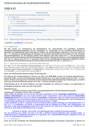 Verfahrenshinweise der Ausländerbehörde Berlin 61.1e. frei 61.2. In Berlin wird von der in § 61 Abs. 2 eröffneten Möglichkeit, Ausreiseeinrichtungen für vollziehbar ausreisepflichtige Ausländer zu schaffen, kein Gebrauch gemacht. Dieses PDF wurde erstellt am: 05.12.2016 Seite 372 von 747