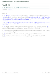 Verfahrenshinweise der Ausländerbehörde Berlin VAB D 20 D.20. Weiterleitung an eine Aufnahmeeinrichtung (20.07.2005; Asylpaket II ) 20.1. 1. frei 20. 1.2. Bei einem Asylantragsteller der zwar bei Grenzbehörden, Ausländerbehörden oder den Polizeien der Länder ein Asylgesuch stellt, sich aber ... weggefallen ... nicht unverzüglich bzw. nicht bis zu einem ihm von der Behörde genannten Zeitpunkt bei der ihm zugewiesenen Aufnahmeeinrichtung meldet, finden die Vorschriften des § 33 Abs. 1, 5 und 6 entsprechende Anwendung, d.h. der Asylantrag gilt als zurückgenommen und das Verfahren wird vom BAMF eingestellt. Ein erneuter Asylantrag gilt dann als Antrag auf Wiederaufnahme, § 33 Abs. 5.. ... weggefallen ... 20. 1.3. Die Rechtsfolge der Einstellung des Asylverfahrens gilt allerdings in den Fällen nicht, in denen der Betroffene unverzüglich, d.h. ohne schuldhaftes Zögern nachweist, dass sein Versäumnis auf Umständen beruht, auf die er keinen Einfluss hatte. 20 .1. 4. Über die Rechtsfolgen der Missachtung einer Weiterleitungsanordnung sind die Betroffenen durch die in 20.1.2. genannten Stellen in einer ihnen verständlichen Sprache schriftlich und gegen Empfangsbestätigung zu belehren. Entsprechende Hinweisblätter sind vom BAMF erstellt, übersetzt und zur Verfügung gestellt worden. 20. 1.5. Sollte dies Grenzbehörden, Ausländerbehörden oder den Polizeien der Länder nicht möglich sein, ist der Ausländer zur Aufnahmeeinrichtung zu begleiten. 20. 2 .1. Weiter trifft die genannten Stellen eine Unterrichtungspflicht gegenüber der Aufnahmeeinrichtung. 20 .2. 2. Die Aufnahmeeinrichtung hat ihrerseits eine Unterrichtungspflicht gegenüber der Außenstelle des BAMF. Dieses PDF wurde erstellt am: 05.12.2016 Seite 622 von 747