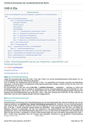 Verfahrenshinweise der Ausländerbehörde Berlin VAB A 25a Inhaltsverzeichnis A.25a. Aufenthaltsgewährung bei gut integrierten Jugendlichen und Heranwachsenden ...... 208 25a.0. Zur Ermessensausübung ............................................................................... 208 25a.1.1.0. Erteilungsvoraussetzungen ............................................................... 208 Geduldeter Aufenthalt ................................................................................. 208 Familiennachzug ......................................................................................... 209 Geltungsdauer ............................................................................................. 209 Erwerbstätigkeit ........................................................................................... 209 25a.1.1.1. Ununterbrochener Aufenthalt seit 4 Jahren ............................. 209 25a.1.1.2. Erfolgreicher Schulbesuch seit 4 Jahren ................................... 209 25a.1.1.3. Zeitpunkt der Antragstellung ...................................................... 210 25a.1.1.4. Positive Integrationsprognose .................................................... 210 25a.1.1.5. Bekenntnis zur freiheitlichen demokratischen Grundordnung .... 210 25a.1.2. Zum Lebensunterhalt ........................................................................... 210 25a.1.3. Versagungsgründe ............................................................................... 211 25a.2.1. Aufenthaltsrecht für Eltern von Minderjährigen ......................................... 211 25a.2.1.2. Lebensunterhaltssicherung ............................................................. 211 25a.2.2. Aufenthaltsrecht für Geschwister von nach Abs.1 Begünstigten ................ 212 25a.2.3. Aufenthaltsrecht für Ehegatten oder Lebenspartner .................................. 212 25a.2.4. Aufenthaltsrecht für minderjährige ledige Kinder ......................................... 212 25a.3. Ausweisungsinteresse ................................................................................... 212 A.25a. Aufenthaltsgewährung bei gut integrierten Jugendlichen und Heranwachsenden ( 01.10.2015; AsylVfbeschlG ) Checkliste § 25a Abs. 1 Checkliste §§ 25a Abs. 2, 60a Abs. 2b 25a.0. Zur Ermessensausübung Liegen die Voraussetzungen des § 25 a Abs. 1 bzw. Abs. 2 Satz 2 vor, soll die Aufenthaltserlaubnis erteilt werden, d.h. nur in Ausnahmefällen ist von der Titelerteilung abzusehen. Auch im Rahmen der Titelerteilung nach § 25a Abs. 2 Satz 1 ist regelmäßig das Ermessen zugunsten des Betroffenen auszuüben, so die besonderen und allgemeinen Erteilungsvoraussetzungen vorliegen. Insofern ist auch hier das “kann“ hier praktisch wie ein „ist“ zu lesen. Ein Ausnahmefall, bei dem das nach § 25a Abs. 1 eröffnete Ermessen ... weggefallen ... allerdings zu Lasten des Ausländers auszuüben ist, liegt vor, solange er minderjährig ist und Ist- Ausweisungsgründe nach § 53 AufenthG a.F. bzw. ein Ausweisungsinteresse nach § 54 n.F. bei beiden Eltern oder einem allein personensorgeberechtigten Elternteil der Erteilung einer Aufenthaltserlaubnis nach § 25a Abs. 2 Satz 1 oder einer Duldung nach § 60a Abs. 2b (vgl. A.60a.2b.) an beide Eltern oder den allein sorgeberechtigten Elternteil entgegenstehen. 25a.1.1. 0 . Erteilungsvoraussetzungen Geduldeter Aufenthalt Voraussetzung für die Erteilung einer Aufenthaltserlaubnis ist nach dem Gesetzeswortlaut, dass der Ausländer, der von der Regelung profitieren will, geduldet bzw. dessen Abschiebung auszusetzen ist. Ausländer, die eine Aufenthaltserlaubnis etwa nach § 25 Abs. 5 besitzen, profitieren nicht von der Regelung, auch wenn sie dadurch etwa was die Geltungsdauer gem. § 26 Abs. 1 betrifft, schlechter gestellt werden als Geduldete. Dies entspricht auch dem Sinn und Zweck der Regelung, Personen zu begünstigen, die trotz ihrer Integration in das gesellschaftliche und soziale Leben längerfristig geduldet sind, ohne in eine Aufenthaltserlaubnis gewachsen zu sein und damit ohne die Möglichkeit, ihren Aufenthalt etwa über § 35 oder § 26 Abs. 4 verfestigen zu können. Etwas anderes ergibt sich auch nicht daraus, dass gemäß § 25 a Abs. 1 Satz 1 neben einem geduldeten auch ein erlaubter oder gestatteter Aufenthalt auf die geforderte Voraufenthaltszeit a n g e r e c h n e t w e r d e n s o l l . Dieses PDF wurde erstellt am: 20.03.2017 Seite 208 von 753