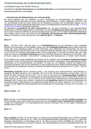 Verfahrenshinweise der Ausländerbehörde Berlin unvollständigen Angaben oder fehlender Mitwirkung. Das Merkblatt ist bei jeder Erstvorsprache bzw. bei jedem Erstkontakt mit der Ausländerbehörde (Erstberatung im Abschiebungsgewahrsam) auszuhändigen. Information über Identitätsfeststellung und –sicherung (M 49) Mit diesem Merkblatt wird der Ausländer auf seine Verpflichtung zur Identitätsangabe, die Möglichkeit der erkennungsdienstlichen Behandlung und seine Verpflichtung, diese Maßnahme zu dulden, hingewiesen (§ 49 Abs. 2 und 10). Das Merkblatt enthält auch einen Hinweis auf die Strafbarkeit unrichtiger oder unvollständiger Angaben und der Verweigerung der erkennungsdienstlichen Behandlung sowie auf die Möglichkeit der Ausweisung nach § 53 Abs. 1 i.V.m. § 54 Abs. 2 Nr. 8b AufenthG bei fehlender Mitwirkung. Das Merkblatt ist grundsätzlich bei jeder Erstvorsprache bzw. bei jedem Erstkontakt mit der Ausländerbehörde (Erstberatung im Abschiebungsgewahrsam) auszuhändigen. Von einer Aushändigung ist jedoch abzusehen, wenn schon bei der ersten Vorsprache erkennbar ist, dass die Voraussetzungen des § 49 für eine erkennungsdienstliche Behandlung nicht vorliegen. Dies ist immer anzunehmen bei der Vorsprache nach Einreise mit einem zustimmungsbedürftigen Visum (z.B. Studenten, Familiennachzug) oder in den Fällen der §§ 39 – 41 AufenthV. 82.3.2. frei 82.4.1. § 82 Abs. 4 Satz 1 stellt klar, dass u.a. zur Identitätsklärung nicht nur das Erscheinen vor den zuständigen Behörden und Vertretungen des Heimatstaates, sondern auch vor ermächtigten Bediensteten dieses Staates angeordnet werden darf. Diese Klarstellung betrifft vor allem Anhörungen durch Bedienstete des Heimatstaates, die insb. aus Praktikabilitätsgründen (Sammelvorführungen') in den Räumen dt. Behörden stattfinden. Auch in einem solchen Fall handelt es sich nicht um ein deutsches Verwaltungsverfahren, auf das insbesondere § 14 VwVfG anzuwenden wäre und in dem mithin ein Anspruch auf anwaltliche Vertretung besteht (vgl. OVG Berlin-Brandenburg, Beschluss vom 20.07.2006 – OVG 8 S 45.06 – sowie vom 18.04.2007 – OVG 2 N 87.07 – und Bayrischer VGH, Beschluss vom 10.10.2006 – M 25 E 06.3724). Da die Regelung eine zügige Identitätsklärung bezweckt, hat der Ausländer auch bei mehreren Auslandsvertretungen vorzusprechen, wenn eine Vermutung der Staatsangehörigkeit hinsichtlich verschiedener Staatsangehörigkeiten besteht. Insbesondere ist die Ausländerbehörde nicht gehalten, im Wege eine Art Rangfolge zunächst das Ergebnis einer Vorsprache abzuwarten, bevor sie eine Aufforderung zu einer Vorsprache bei einer anderen Auslandsvertretung erlässt bzw. eine entsprechende zwangsweise Vorführung veranlasst (OVG Berlin-Brandenburg, Beschluss vom 01.12.2010 - OVG 3 S 70.10-). Minderjährige Ausländer können verpflichtet werden, in der Vertretung ihres (wahrscheinlichen) Herkunftslandes zu erscheinen (VG Berlin, Beschluss vom 11.05.2006 - VG 15 A 157.06; VG Berlin, Beschluss vom 22.07.2008 - VG 15 A 245.08; VG Berlin, Beschluss vom 06.12.2010 - VG 16 L 252.10). Dies gilt auch für handlungsunfähige Ausländer im Sinne von § 80 Abs. 1 AufenthG. Ein Verstoß gegen die UN-Kinderrechtskonvention stellt die Verpflichtung nicht dar (VG Berlin, Beschluss vom 06.12.2010 - VG 16 L 252.10). Da die Verpflichtung zur Beschaffung von Heimreisedokumenten bei Ausländern unter 18 Jahren nach § 80 Abs. 4 AufenthG auch den gesetzlichen Vertreter trifft, können die Maßnahmen zur Durchsetzung dieser Verpflichtung auch ihm gegenüber ergriffen werden (LG Cottbus, Beschluss vom 27.01.2010 - 7 T 214/09). Sie treten neben die Mitwirkungspflichten des Minderjährigen (VG Sigmaringen, Beschluss vom 20.04.2006 - 2 K 363/06). 82.4.2. bis 82.4.3. frei' 82.5.1. § 82 Abs. 5 ist die Rechtsgrundlage für die Verpflichtung eines Ausländers, ein aktuelles Lichtbild vorzulegen oder bei der Aufnahme eines solchen Bildes mitzuwirken sowie bei der Abnahme seiner Fingerabdrücke mitzuwirken, um Lichtbild und Fingerabdrücke in ein aufenthaltsrechtliches Dokument einbringen sowie für eine spätere Feststellung der Identität nutzen zu können. 82.5.2. frei 82.6.1. bis 82.6.2. § 82 Abs. 6 ist mit dem Gesetz zur Umsetzung der Hochqualifiziertenrichtlinie zum 01.08.2012 eingefügt worden und dient der Umsetzung von Art. 13 Abs. 4 der Hochqualifiziertenrichtlinie (2009/50/EG). Bei den in S. 1 genannten befristeten Aufenthaltstiteln zur Beschäftigung (§§ 18, 18a, Blaue Karte EU) besteht die Pflicht des Titelinhabers, der zuständigen Ausländerbehörde unverzüglich mitzuteilen, wenn die Beschäftigung, für die die Aufenthaltserlaubnis bzw. die Dieses PDF wurde erstellt am: 20.03.2017 Seite 415 von 753