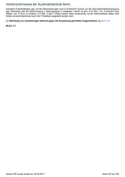 Verfahrenshinweise der Ausländerbehörde Berlin VAB A 83 A.83. Beschränkung der Anfechtbarkeit ( 2. RiLiUmG; NeubestG ) 83.1. § 83 schließt nur die Anfechtbarkeit der Versagung eines nationalen Visums und eines Passersatzes an der Grenze aus. Siehe auch die Hinweispflicht nach § 83 S. 2. Artikel 32 Absatz 3 des Visakodex sieht Rechtsmittel gegen die Ablehnung eines Antrags auf Erteilung eines Schengen- Visums vor, worunter auch Visa zu touristischen Zwecken sowie an der Grenze zu erteilende Schengen-Ausnahmevisa fallen. 83.2. Kein Widerspruchsverfahren bei Versagung einer Duldung, § 4 Abs. 2 S. 2 AGVwGO. Für die sonstigen Maßnahmen und Entscheidungen zur Vorbereitung und Durchsetzung der Ausreisepflicht gilt wie bisher § 4 Abs. 2 S. 2 AGVwGO. Des Weiteren ist auch gegen Ablehnungen von Anträgen auf Erteilung und Verlängerung einer Aufenthaltserlaubnis der Widerspruch in der Regel nicht statthaft. Dies folgt aus § 4 Abs. 2 S. 1 AGVwGO. Etwas anderes gilt aber unter Umständen dann, wenn durch die Entscheidung eine Ausreisepflicht nicht begründet wird. Dies ist bspw. dann möglich, wenn der Betreffende bereits einen Aufenthaltserlaubnis besitzt und dessen Antrag auf Erteilung eines anderen Aufenthaltstitels (Niederlassungserlaubnis oder einer Aufenthaltserlaubnis zu einem anderen Aufenthaltszweck) abgelehnt wird. 83.3. Diese Regelung schließt das Widerspruchsverfahren in Fällen, in denen das Bundesamt für Migration und Flüchtlinge nach § 11 Abs. 7 AufenthG ein Einreise- und Aufenthaltsverbot angeordnet hat und eine Befristungsentscheidung hierüber traf, aus. Zur näheren Verfahrensweise vgl. auch A.11.7. Dieses PDF wurde erstellt am: 20.03.2017 Seite 417 von 753