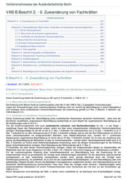 Verfahrenshinweise der Ausländerbehörde Berlin VAB B.BeschV.2. - 9. Zuwanderung von Fachkräften Inhaltsverzeichnis B.BeschV.2. - 9. Zuwanderung von Fachkräften .......................................................................................... 547 ................................................................................................................................................................ 621 B.BeschV.2. Hochqualifizierte, Blaue Karte, Fachkräfte mit inländischen Hochschulabschluss ........... 547 2.1.1 NE für Hochqualifizierte ......................................................................................................... 547 2.1.2 Blaue Karte ohne Zustimmungserfordernis .......................................................................... 547 2.1.3 Fachkräfte mit inländischem Hochschulabschluss ............................................................... 547 2.2 Blaue Karte EU mit Zustimmung .............................................................................................. 548 2.3 Sonstige Hochschulabsolventen .............................................................................................. 548 2.4 Entgeltgrenze Blaue Karte EU ................................................................................................. 548 B.BeschV.3. Führungskräfte .................................................................................................................. 548 B.BeschV.4. Leitende Angestellte und Spezialisten .............................................................................. 549 B.BeschV.5. Wissenschaft, Forschung und Entwicklung ...................................................................... 549 B.BeschV.6. Ausbildungsberufe ............................................................................................................ 550 B.BeschV.7. Absolventinnen und Absolventen deutscher Auslandsschulen ........................................ 550 B.BeschV.8. Betriebliche Aus- und Weiterbildung; Anerkennung ausländischer Berufsqualifikationen ...... 551 B.BeschV.9. Beschäftigung bei Vorbeschäftigungszeiten oder längerem Voraufenthalt ...................... 551 B.BeschV.2. - 9. Zuwanderung von Fachkräften ( NeuBestG ; 24.11.2016; 16.01.2017 ) B.BeschV.2. Hochqualifizierte, Blaue Karte, Fachkräfte mit inländischen Hochschulabschluss 2.1.1 NE für Hochqualifizierte Keiner Zustimmung bedarf die Zustimmung zur NE nach § 19 AufenthG, s. VAB.A.19.1.1. 2.1.2 Blaue Karte ohne Zustimmungserfordernis Die Erteilung einer Blauen Karte ist zustimmungsfrei unter den in den VAB.A.19a.1.2 geregelten Voraussetzungen. Liegen die Voraussetzungen einer zustimmungsfreien Erteilung nicht vor, kommt bei Beschäftigung in einem Mangelberuf und Vorliegen eines ausländischen Hochschulabschlusses die Zustimmung gemäß § 2 Abs. 2 BeschV in Betracht, vgl. VAB.B.BeschV 2.2.. 2.1.3 Fachkräfte mit inländischem Hochschulabschluss Keiner Zustimmung bedarf die Beschäftigung eines ausländischen Absolventen deutscher Hochschulen , wenn eine der beruflichen Qualifikation angemessene Beschäftigung beabsichtigt ist (zum Begriff der angemessenen Beschäftigung vgl. die Ausführungen unter A.16.4.2.). Von der Zustimmungsfreiheit sind auch ausländische Lehramts- und Rechtsreferendare für die – in der Regel – zweijährige Dauer des Referendariats erfasst, sofern sie über einen entsprechenden inländischen Hochschulabschluss verfügen. Rechtsgrundlage für die AE ist hier § 17 Abs. 1 AufenthG. Ein Zweckwechsel von § 16 Abs. 1 AufenthG zu § 17 Abs. 1 AufenthG ist vor dem Hintergrund des § 16 Abs. 2 AufenthG zulässig, weil es sich bei dem Referendariat um eine für einen Lehramtsanwärter mit entsprechendem Bachelor- bzw. Master-Abschluss bzw. Juristen mit 1. juristischen Staatsexamen angemessene Beschäftigung im Sinne des § 16 Abs. 4 AufenthG handelt. So ist zwar die Vergütung eher gering, die Beschäftigung als Referendar ist aber für Lehramtsanwärter / Juristen üblich. Dementsprechend findet auch § 16 Abs. 4 AufenthG zur Suche eines Referendariatsplatzes Anwendung, wenn die übrigen Voraussetzungen für die Erteilung dieser Aufenthaltserlaubnis vorliegen. Nach Beendigung des Referendariats gilt § 17 Abs. 3. IT-Fachkräfte, die über keinen Hochschulabschluss verfügen, haben bei entsprechendem Bedarf an Arbeitskräften die Möglichkeit nach der neuen Regelung in § 6 Abs. 2 Satz 1 Nr. 2 BeschV (neu) einen Zugang zum Arbeitsmarkt zu erhalten. Für die zustimmungsfreie Erteilung einer Aufenthaltserlaubnis zur Beschäftigung bzw. die Zustimmung für ein entsprechendes Visum ist grundsätzlich die Vorlage eines Arbeitsvertrages erforderlich. So der gesicherte Lebensunterhalt nachgewiesen ist oder anderweitig nachgewiesen werden kann, genügt allerdings auch die Vorlage einer Einstellungszusicherung. Ist zweifelhaft, ob es sich bei der angestrebten Erwerbstätigkeit, um eine Beschäftigung oder eine selbständige Tätigkeit handelt, können die Beteiligten (Vertragspartner) aufgefordert werden, eine Statusfeststellung bei der Deutschen Rentenversicherung durchzuführen. Dies kann etwa bei Vorlage eines Honorar-/ Arbeitsvertrages eines wissenschaftlichen Mitarbeiters mit einem Professor/Dozenten einer Hochschule der Fall sein (zu den Einzelheiten vgl. VAB.A.21.0.). Davon abzugrenzen sind allerdings die Fälle, in denen schon zweifelhaft ist, ob überhaupt eine Erwerbstätigkeit vorliegt, Dieses PDF wurde erstellt am: 20.03.2017 Seite 547 von 753