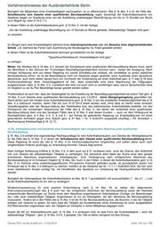 Verfahrenshinweise 1. der Ausländerbehörde Berlin Japan, Kanada, der Republik Korea, von Monaco, Neuseeland, San Marino, der Schweiz oder der Vereinigten Staaten von Amerika besitzen (vgl. § 41 AufenthV) oder die als deutsche Volkszugehörige einen Aufnahmebescheid nach dem BVFG besitzen und wenn eine Aufnahmezusage der Schule vorliegt, oder 2. es sich bei der Schule um eine öffentliche oder staatlich anerkannte Schule mit internationaler Ausrichtung handelt (insbesondere öffentliche Schulen oder staatlich anerkannte Ersatzschulen in privater Trägerschaft, die bilinguale Bildungsgänge oder Bildungsgänge mit einem deutschen und einem ausländischen Abschluss anbieten) oder 3. es sich um eine Schule handelt, die nicht oder nicht überwiegend aus öffentlichen Mitteln finanziert wird, die Schüler auf internationale Abschlüsse, Abschlüsse anderer Staaten oder staatlich anerkannte Abschlüsse vorbereitet und insbesondere bei Internatsschulen eine Zusammensetzung aus Schülern verschiedener Staatsangehörigkeiten g e w ä h r l e i s t e t Merke: Zu den Schulen im Sinne des Punktes 3 zählen die in verschiedenen Formen ausgestalteten Ergänzungsschulen. Dies sind Schulen, die auf die staatliche Nichtschülerprüfung vorbereiten oder z.B. zum Erwerb des „International General Certificate of Secondary Education“ (IGCSE), von High-School-Diplomen (AP-Prüfung) oder des International Baccalaureate führen. Die Schulen müssen grundsätzlich eine Zusammensetzung aus Schülern verschiedener Staatsangehörigkeiten gewährleisten. Ausnahmen kommen bei den so genannten Botschaftsschulen in Betracht. Da die Ergänzungsschulen keiner staatlichen Schulaufsicht unterliegen, die zu einer internationalen Schülerschaft verpflichten könnte, kann eine Steuerung nur über die Erteilung von Aufenthaltserlaubnissen erfolgen. Wie das Verwaltungsgericht Berlin bestätigt hat, kommt es bezüglich des Erfordernisses der nicht öffentlichen Finanzierung der Schule auch nicht darauf an, ob im Einzelfall die Schulkosten vollständig durch den Antragsteller getragen werden - etwa in dem der Betroffene nicht in die Schülerstatistik ausgenommen wird, auf deren Grundlage die öffentlichen Zuschüsse gewährt werden. Maßgeblich ist vielmehr die Finanzierung der Schule selbst (VG Berlin, Urteil vom 13.12.2007 - VG 9 V 43.07) oder 4. der Aufenthalt ganz oder teilweise aus öffentlichen Mitteln bestritten wird, die die Ausbildung oder den Aufenthalt fördern oder ermöglichen sollen (insbesondere Begabtenstipendium). Gleiches gilt bei der Ausbildung von Hochbegabten, bei denen der Schulbesuch gerade die besondere Begabung fördern soll – etwa weil die allgemeinbildende Schule hier einen besonderen Förderschwerpunkt hat. Soweit die Betreuung durch einen Elternteil erforderlich ist, kommt hier auch die Erteilung einer Aufenthaltserlaubnis nach § 7 Abs. 1 S. 3 in Betracht. Merke: Die Erteilung einer Aufenthaltserlaubnis zum Besuch einer Schule mit internationaler Ausrichtung oder einer Schule, die nicht oder nicht überwiegend aus öffentlichen Mitteln finanziert wird (Ergänzungsschule) in den genannten Ausnahmefällen unter 2 .) und 3 .) kommt zudem in der Regel erst ab der 9. Klassenstufe in Betracht. Diese Einschränkung gilt für die genannten Schulen allerdings dann nicht, wenn die oben unter 1.) oder 4 .) genannten Voraussetzungen vorliegen. Auch ist die Erteilung einer Aufenthaltserlaubnis zum Zwecke des Erwerbs des deutschen Abiturs als Maßnahme der Studienvorbereitung nicht möglich. Die allgemeinen schulischen Voraussetzungen für die Aufnahme der beabsichtigten Ausbildung können im Bundesgebiet nicht nachgeholt werden. Im übrigen wird ergänzend auf die Nr. 16.5.2. AufenthG-VwV verwiesen. Schulbesuch zum Zwecke einer qualifizierten Berufsausbildung Zu den Aufenthaltszwecken des § 16 Absatz 5 zählen auch Schulbesuche zum Zwecke einer qualifizierten Berufsausbildung, die nicht einem Studium nach § 16 Absatz 1 oder einer betrieblichen Ausbildung i.S.v. § 17 entsprechen. Zu diesen Maßnahmen sind Ausbildungen in vorwiegend fachtheoretischer Form zu zählen, die mindestens zwei Jahre dauern und nach bundes- oder landesrechtlichen Regelungen zu einem staatlich anerkannten oder vergleichbar geregelten Berufsabschluss führen. Die Erteilung der Aufenthaltserlaubnis kommt grundsätzlich nur dann in Betracht, wenn sich der Bildungsgang bei dem Bildungsträger nicht ausschließlich an Staatsangehörige eines Staates richtet. Soll die Berufsausbildung an einer privaten Ergänzungsschule durchgeführt werden, muss der Ausbildungsgang förderungsfähig nach dem BAföG sein. Die Förderungsfähigkeit prüft die für Bildung zuständige Senatsverwaltung auf Antrag der Ergänzungsschule im Rahmen einer Gleichwertigkeitsprüfung nach § 2 Abs. 2 BAföG und erlässt dazu einen formellen Bescheid. Berufliche Praktika, die vorgeschriebener Bestandteil der Ausbildung sind, bedürfen nach § 15 Nr. 1 BeschV nicht der Zustimmung der Bundesagentur für Arbeit. Merke: Auch die Berliner Oberstufenzentren (OSZ) sind neben ihrer Funktion als berufliche Gymnasien (allgemeinbildende Schulen, die zum Abitur führen) und Berufsschulen (Besuch setzt betriebliche Ausbildung voraus -Fälle des § 17) auch Berufsfachschulen, die eine fachtheoretische Ausbildung anbieten, die zu einem staatlich anerkannten Berufsabschluss führt. Für eine solche Ausbildung gelten die o.g. Restriktionen für einen Schulbesuch nicht. In den Fällen, in Dieses PDF wurde erstellt am: 12.09.2016 Seite 127 von 750
