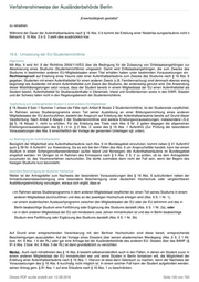 Verfahrenshinweise der Ausländerbehörde Berlin Sonstiges Weiter gelten mit Ausnahme der gesondert erforderlichen schriftlichen Zustimmung der/des Personensorgeberechtigten bei Minderjährigen aber nach § 80 Handlungsfähigen (vgl. unten 16.7.) die allgemeinen Verfahrensvorschriften und Gebührentatbestände. Ein im Vergleich zu § 16 Abs. 1 besonderer Status folgt aus der Erteilung nicht. Insbesondere gelten bzgl. der Geltungsdauer, der Möglichkeit zur Erwerbstätigkeit und des Ausschlusses der Erteilung der Niederlassungserlaubnis, sowie den Möglichkeiten eine Erlaubnis zur Arbeitsplatzsuche zu erhalten, § 16 Abs. 1 - 4 uneingeschränkt. Als Rechtsgrundlage ist § 16 Abs. 6 in das Etikett einzutragen. Bei Bitten um Zustimmung in Visaverfahren gelten vorliegend keine Besonderheiten zu den obigen Ausführungen. 16.7. Zustimmung der Personensorgeberechtigten Der Absatz 7 dient der Umsetzung des zwingenden Erfordernisses des Einverständnisses der erziehungsberechtigten Personen mit dem Aufenthalt Minderjähriger, das Artikel 6 Abs. 1 Buchstabe b der Studentenrichtlinie vorsieht. Praktisch dürfte die Vorschrift allerdings nicht zum Tragen kommen. Dieses PDF wurde erstellt am: 12.09.2016 Seite 131 von 750