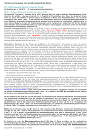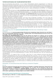 Verfahrenshinweise der Ausländerbehörde Berlin VAB A 30 Inhaltsverzeichnis A.30. Ehegattennachzug ................................................................................................................................. 245 == ............................................................................................................................................................. 616 30.1.0. Anspruch auf Ehegattennachzug ................................................................................................ 245 30.1.1.2. erforderliche einfache Sprachkenntnisse ........................................................................... 245 30.1.1.3. Familiennachzug zu Forschern ......................................................................................... 246 30.1.2. Unbeachtlichkeit von Mindestalter und Sprachkenntnissen ............................................... 246 30.1.3. sonstige Unbeachtlichkeit von Sprachkenntnissen ............................................................. 247 Ausländer im Sinne von § 41 AufenthV und Unionsbürger sowie Staatsangehörige des EWR ...... 247 Ausländer bei bestimmten Beschäftigungen ............................................................................. 247 Integrations- und Erwerbstätigkeitsprognose ............................................................................ 248 dauerhaft angelegter Aufenthalt ................................................................................................ 248 Einreise mit deutschen Kindern ................................................................................................. 248 Anspruch auf Ehegattennachzug mit Kindern ........................................................................... 248 Erfüllung der Voraussetzungen des § 28 Abs. 1 S. 1 Nr. 3 AufenthG ....................................... 249 Besitz eines D-Visums ............................................................................................................... 249 Besondere Umstände des Einzelfalls ........................................................................................ 249 30.2.1. Ehegattennachzug nach Ermessen ..................................................................................... 249 30.3. Verlängerung der Aufenthaltserlaubnis .......................................................................................... 250 Leitlinien für die Ermessensausübung .............................................................................................. 250 Zweifel an der Lebensunterhaltssicherung ...................................................................................... 251 30.4. Mehrehe ......................................................................................................................................... 251 A.30. Ehegattennachzug == ( NeubestG ; 15.12.2015 ) 30.1.0. Anspruch auf Ehegattennachzug 30.1.1.1. Aufgrund der aufenthaltsrechtlichen Vorwirkung des Schutzgebotes des Artikels 6 GG kann ein mit Blick auf einen konkreten Eheschließungstermin im Bundesgebiet entsprechend langfristig berechnetes Visum zur Einreise auf Grundlage des künftigen Anspruchs nach § 28 Abs. 1 Satz 1 Nummer 1 bzw. § 30 erteilt werden, so die gesetzlichen Voraussetzungen – insbesondere gem. § 30 Abs. 1 S. 1 Nr. 1 und 2 – vorliegen (vgl. Nr. 30.0.2, 30.0.6 AufenthG-VwV) Merke: So der gesicherte Lebensunterhalt überhaupt Voraussetzung des Ehegattennachzugs ist und dieser nach Eheschließung – etwa durch das Einkommen des hier aufhältlichen Ehegatten - hinreichend gesichert ist, bedarf es grundsätzlich nicht der Prüfung wie der Lebensunterhalt des Nachziehenden bis zur Eheschließung gesichert wird oder der Abgabe einer Verpflichtungserklärung des hier aufhältlichen Verlobten. Nach Nr. 30.0.6 AufenthG-VwV muss die Eheschließung unmittelbar bevorstehen. Dies setzt voraus, dass das Anmeldeverfahren beim zuständigen Standesamt abgeschlossen ist und seitdem nicht mehr als sechs Monate vergangen sind. Weiter muss eine Bescheinigung des Standesamts vorliegen, die einen konkreten Eheschließungstermin enthält. Ansonsten wäre nicht prüfbar, ob die Ehe während der Gültigkeit des nationalen Visums geschlossen werden kann. Wird nach der Einreise mit einem D-Visum vor der Eheschließung ein Antrag auf Erteilung einer Aufenthaltserlaubnis gestellt und ist das Visum abgelaufen, ist eine Fiktionsbescheinigung nach § 81 Abs. 4, Abs. 5 AufenthG bis drei Monate nach dem Eheschließungstermin auszustellen. Die Erteilung einer Aufenthalterlaubnis gem. § 28 Abs. 1 S. 1 Nr. 1 kommt erst nach der Eheschließung und Vorlage der Heiratsurkunde in Betracht. Für die Erteilung eines Visums bzw. einer Aufenthaltserlaubnis gem. § 7 Abs. 1 S. 3 zum Zwecke der Eheschließung im Bundesgebiet ist somit kein Raum. 30.1.1.2. erforderliche einfache Sprachkenntnisse Die von § 30 Abs. 1 Satz 1 Nr. 2 geforderte Fähigkeit, sich auf einfache Art in deutscher Sprache zu verständigen, setzt Dieses PDF wurde erstellt am: 12.09.2016 Seite 245 von 750