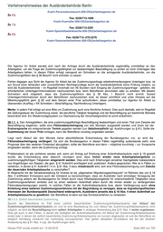 Verfahrenshinweise der Ausländerbehörde Berlin Koeln-Personalaustausch.008-OS@arbeitsagentur.de Zu 6 ): Fax: 0228/713-1600 Koeln-Kuenstler.008-OS@arbeitsagentur.de Zu 7 ): Fax: 0228/713-2281 Koeln-Spezialitaetenkoeche.008-OS@arbeitsagentur.de Zu 8 ): Fax: 0228/713--270-2279 Koeln-Saisonarbeitnehmer.008-OS@arbeitsagentur.de Die Agentur für Arbeit wendet sich nach der Anfrage durch die Ausländerbehörde regelmäßig unmittelbar an den Arbeitgeber, um die Frage der Zustimmungsfähigkeit zur beabsichtigten Beschäftigung zu prüfen so noch Unterlagen des Arbeitgebers fehlen. In diesen Fällen erfolgt zwingend ein Schreiben an die anfragende Ausländerbehörde, um die Zustimmungsfiktion des § 36 BeschV nicht eintreten zu lassen . Fehlen dagegen aus Sicht der Agentur für Arbeit bei der Zustimmungsanfrage arbeitnehmerbezogene Unterlagen bzw. ist auf Grund einer fehlenden oder unzutreffenden Rechtsgrundlage durch die Ausländerbehörde keine Prüfung möglich, so wird die Ausländerbehörde – im Regelfall innerhalb von 48 Stunden nach Eingang der Zustimmungsanfrage - gebeten, die erforderlichen Unterlagen/Informationen nachzureichen bzw. beim Betroffenen einzuholen oder zu erheben. Mit diesem Schreiben wird mitgeteilt, dass die Zustimmungsfiktion des § 36 Abs. 1 BeschV nicht eintritt. Soweit Unterlagen/Informationen durch den Betroffenen nachzureichen sind, ist dieser schriftlich und unter Hinweis auf die Mitwirkungspflicht gem. § 82 und dem Setzen einer Frist aufzufordern, diese unmittelbar zur Agentur für Arbeit zu übersenden (AusReg > KK Schreiben > Beschäftigung, Nachforderung Unterlagen). Merke: In jedem Fall erfolgt auf eine Bitte um Zustimmung auch eine förmliche Antwort. Dies auch deshalb, weil im Regelfall die Geltungsdauer der Zustimmung sowie die berufliche Tätigkeit festgelegt und die Beschäftigung auf bestimmte Betriebe beschränkt wird. Ein Wiedervorlagesystem zur Überwachung der Verschweigensfrist ist somit entbehrlich. 39.1.1. 4. Den Antragstellern, die eine zustimmungspflichtige Beschäftigung beabsichtigen und einen Titel zum Zwecke der Beschäftigung begehren, sollte eine Fiktionsbescheinigung von drei Monaten ausgestellt werden und ihnen bei der Erstvorsprache ein entsprechender Termin gegeben werden (zur Gebührenpflicht vgl. Ausführungen zu § 81). Sollte die Zustimmung vor dieser Frist vorliegen, kann der Betroffene vorzeitig vorgeladen werden. Liegt nach Ablauf der drei Monate keine abschließende Entscheidung der Bundesagentur vor, so wird die Fiktionsbescheinigung verlängert. Da sich die Bundesagentur in diesen Fällen regelmäßig außerstande sieht, eine Prognose über den weiteren Fristenlauf abzugeben, sollte der Betroffene erst dann – möglichst kurzfristig – zur Vorsprache eingeladen werden, wenn die Zustimmung vorliegt. Problematisch ist wie verfahren werden soll, wenn ein Antrag auf Erteilung einer Aufenthaltserlaubnis nach § 18 gestellt wurde, die Entscheidung aber dadurch verzögert wird, dass immer wieder neue Arbeitsplatzangebote zu zustimmungspflichtigen Tätigkeiten eingereicht werden. Dies wird nach Erfahrungen einzelner Sachgebiete insbesondere von Angehörigen von Staaten, die gem. § 41 AufenthV priviliegiert sind, praktiziert. Anders gesprochen: Wie ist in Fällen zu verfahren, in denen § 41 AufenthV i.V.m. § 81 Abs. 3 dazu missbraucht wird, sich eine Fiktionsbescheinigung zum Zwecke der dauernden Arbeitsplatzsuche zu verschaffen? In Absprache mit der Senatsverwaltung für Inneres ist als „allgemeiner Migrationsgesichtspunkt“ im Rahmen des von § 18 Abs. 2 eröffneten Ermessens auch der Umstand zu berücksichtigen, dass ein Ausländer nach einmaliger Versagung der Zustimmung seitens der Bundesagentur für Arbeit durch neue Arbeitsplatzangebote für unterschiedliche Tätigkeiten neue Zustimmungsverfahren einleitet und so einen weiteren Aufenthalt allein durch die immer wieder zu verlängernden Fiktionsbescheinigungen erwirkt. In solchen Fällen ist die Aufenthaltserlaubnis bzw. deren Verlängerung auch ohne Einleitung eines weiteren Zustimmungsverfahrens mit der Begründung zu versagen, dass es migrationspolitischen Interessen der Bundesrepublik Deutschland widerspricht, Ausländern jenseits des § 16 Abs. 4 einen Aufenthalt zur Arbeitsplatzssuche zu gewähren. Der Betroffene ist dann auf das Einreiseverfahren zu verweisen. 39.1.1.5. Zeitlich beschränkte Zustimmung Spricht der Betroffene im Fall einer zeitlich beschränkten Zustimmung/Arbeitserlaubnis vor Ablauf der Zustimmungsfrist/Arbeitserlaubnis vor und ist eine Bearbeitung bis zum Ablauf der Zustimmung/Arbeitserlaubnis nicht möglich, so wird die Beschäftigung beim selben Arbeitgeber in analoger Anwendung des § 81 Abs. 4 weiter zugelassen. Dies gilt auch in den Fällen, in denen die Gültigkeit der Aufenthaltserlaubnis mit Ablauf der Zustimmung/Arbeitserlaubnis endet oder in denen die zeitlich beschränkte Zustimmung/Arbeitserlaubnis vor kurzem abgelaufen ist und der Betroffene es lediglich fahrlässig versäumt hat, rechtzeitig vorzusprechen. Hier gelten dieselben Grundsätze wie bei der direkten Anwendung des § 81 Abs. 4 (vgl. die Ausführungen dort). Dieses PDF wurde erstellt am: 12.09.2016 Seite 283 von 750