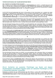 Verfahrenshinweise der Ausländerbehörde Berlin Einreise der Flüchtlinge. Ausgenommen sind unbegleitete Minderjährige und Schwerstkranke. 1.6. Personen, die schwerstkrank oder minderjährig sind und ohne Familienangehörige aufgenommen werden, werden zwar in die Verteilung einbezogen; in solchen Fällen klärt das BAMF vor der Einreise unter Berücksichtigung der jew. Anzahl bereits erfolgter Aufnahmen, welches Land zur Aufnahme einer schwerstkranken Person und ihrer Familienangehörigen bzw. eines unbegleiteten Minderjährigen bereit ist. Die Personen werden von einem Vertreter des aufnehmenden Landes unmittelbar nach Ankunft vom Zielflughafen zum Zielort begleitet. Bei Minderjährigen, die ohne Familienangehörige aufgenommen werden, gewährleistet das aufnehmende Land, dass diese am Zielflughafen in Empfang genommen und dem für die Inobhutnahme zuständigen Jugendamt zugeführt werden. 1.7. Die Verteilung der ausgewählten Personen erfolgt nach Maßgabe des Königsteiner Schlüssels (Berlin 5,08 % für 2016) und unter Berücksichtigung der Wahrung der Familieneinheit und sonstiger integrationsförderlicher Bindungen nach Deutschland. Für die Verteilung finden § 24 Abs. 3 und 4 entsprechende Anwendung, bzgl. der Wohnsitzregelung gilt bis zum 05.08.2019 § 12a; danach finden § 24 Abs. 4 und 5 Anwendung (s. dazu auch nachfolgend 2.). 2. Begünstigter Personenkreis Die Auswahl der Flüchtlinge durch das BAMF orientiert sich an folgenden Kriterien: Wahrung der Familieneinheit Familiäre oder sonstige integrationsförderliche Bindungen nach Deutschland, Integrationsfähigkeit (Indikatoren: Grad der Schul- und berufsausbildung, Berufserfahrung, Sprachkenntnisse, Religionszugehörigkeit, geringes Alter), Grad der Schutzbedürftigkeit, ggf. weitere Kriterien, die im Rahmen von gemeinsamen Verfahrensleitlinien auf EU-Ebene mit der Türkei vereinbart werden. 3. Ausschlussgründe die wegen Delikten, die in Deutschland als vorsätzliche Straftat anzusehen sind, verurteilt worden sind oder bei denen tatsächliche Anhaltspunkte die Schlussfolgerung rechtfertigen, dass Verbindungen zu kriminellen organisationen oder terroristischen Vereinigungen bestehen oder bestanden haben oder dass sie in sonstiger Weise Bestrebungen verfolgen oder unterstützen oder unterstützt haben, die gegen den Gedanken der Völkerverständigung verstoßen oder gegen das friedliche Zusammenleben der Völker gerichtet sind. 4. Erteilung und Verlängerung des Aufenthaltstitels im Inland 4.1. Im Rahmen des Aufnahmeverfahrens findet eine Überprüfung der Personen im Visumverfahren durch die Sicherheitsbehörden statt. Eine Beteiligung der Sicherheitsbehörden im Inland ist damit erst vor der Verlängerung der Aufenthaltserlaubnis erforderlich. 4.2. Die aufgenommenen Flüchtlinge erhalten eine AE nach § 23 Abs. 2 für drei Jahre; von der Anwendung der allgemeinen Erteilungsvoraussetzungen des § 5 Abs. 1 ist dabei abzusehen. Der Aufenthaltstitel berechtigt zur Ausübung einer Erwerbstätigkeit (§ 23 Abs. 2 S. 5). Die Aufenthaltserlaubnis wird bei der Ersterteilung für die Dauer ihrer dreijährigen Gültigkeit mit der Auflage „Wohnsitznahme im Land Berlin erforderlich" versehen (bzgl. der Einzelheiten vgl. die Ausführungen unter A.12a.). Besteht ein Anspruch auf einen Integrationskurs (§ 44 Abs. 1 S. 1 Nr. 2 i.V.m. Abs. 3) und verfügt die Person nicht über ausreichende Kenntnisse der deutschen Sprache, ist eine Verpflichtung zur Teilnahme an einem Integrationskurs zu verfügen (§ 44 Abs. 1 S. 1 Nr. 1 b). 4.3. Auf die Verlängerung der AE finden dieselben Vorschriften Anwendung wie auf die Erteilung (§ 8 Abs. 1). Daraus folgt, dass im Rahmen der Verlängerung lediglich das Vorliegen von Ausweisungsgründen (vgl. 3.) bzw. eine Ausweisung sowie ggf. das Erfüllen der Passpflicht und ggf. das Erfüllen der Teilnahmepflicht am Integrationskurs zu prüfen sind. Bzgl. der Wohnsitzregelung gelten dann § 24 Abs. 4 und 5 (die Anwendung des § 12a ist bis 05.08.2019 befristet). Die Erteilung eines unbefristeten Aufenthaltstitels richtet sich nach § 9a bzw. § 26 Abs. 4. 5. Passpflicht In den Fällen, in denen kein gültiger Nationalpass vorliegt, gilt für die Ersterteilung unter Berücksichtigung der Tatsache, dass den aufgenommenen Personen zur Wahrung besonderer politischer Interessen der Bundesrepublik Deutschland eine Aufnahmezusage erteilt worden ist, eine Ausnahme von der Passpflicht gem. §§ 5, 6 Nr. 1 bzw. Nr. 2 AufenthV. Die Reiseausweise für Ausländer werden mit einer Gültigkeit für alle Staaten ausgestellt. Im Falle der Verlängerung der Aufenthaltserlaubnis erfolgt diese grundsätzlich auf Ausweisersatz. Die Ausstellung eines Reiseausweises kommt nur unter den Voraussetzungen des § 5 AufenthV in Betracht, vgl. hierzu VAB.B.5 AufenthV. Diese Verfahrenspraxis schließt es nicht aus, zu einem späteren Zeitpunkt die Vorlage syrischer Nationalpässe zu verlangen. 6. Aufenthaltsrechtliche Verfestigung Dieses PDF wurde erstellt am: 01.06.2017 Seite 190 von 752