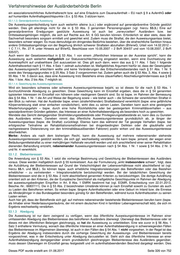 Verfahrenshinweise der Ausländerbehörde Berlin VAB A 53 Inhaltsverzeichnis A.53. Ausweisung ............................................................................................................................. 324 53.0. Grundsätzliches ................................................................................................................ 324 53.1. Ausweisungstatbestand .................................................................................................... 324 53.1.1. Ausweisungsinteresse und Gefahrenprognose .................................................... 324 53.1.1.1. Rechtsgutverletzung ..................................................................................... 324 53.1.1.2. Gefahrenprognose (spezialpräventive Ausweisung) .................................... 325 53.1.1.3. Generalpräventive Ausweisung .................................................................... 326 53.1.1.4. Gewichtung des Ausweisungsinteresses ..................................................... 326 53.1.2. Bleibeinteressen ................................................................................................... 326 53.1.3 Abwägung ............................................................................................................. 326 53.1.4. Maßgeblicher Zeitpunkt für die Beurteilung der Sach- und Rechtslage ................. 327 53.1.5. Wiederaufgreifen des Verfahrens / Rücknahme bestandskräftiger Ausweisungen ...... 327 53.2. Abwägungskriterien .......................................................................................................... 328 53.3. Ausweisungsschutz bei bestimmten Personengruppen ................................................... 328 53.4. Vorübergehender Ausschluss der Ausweisung ................................................................ 329 A.53. Ausweisung ( GErlAW, 16.01.2017; 16.05.2017 ) 53.0. Grundsätzliches Mit dem Gesetz zur Neubestimmung des Bleiberechts und des Aufenthaltsbeendigungsrechts ist das Ausweisungsrecht grundlegend neu geregelt worden. Anstelle des bisherigen Stufensystems, das zwischen Ist-, Regel- und Ermessensausweisung unterschied, tritt nunmehr eine Ausweisung, die auf der umfassenden und ergebnisoffenen Abwägung aller Umstände des Einzelfalls beruht. Ergibt die Abwägung, dass das öffentliche Ausweisungsinteresse das Bleibeinteresse des Betreffenden im Bundesgebiet überwiegt, ist die Ausweisung zwingend zu verfügen. Diese Verhältnismäßigkeitsabwägung ist gerichtlich voll überprüfbar, da eine behördliche Ermessensprüfung nicht mehr stattfindet. Durch die gesetzliche Neubestimmung soll dem Umstand Rechnung getragen werden, dass die höchstrichterliche Rechtsprechung in der jüngeren Vergangenheit die Rechtsfolge einer zwingenden oder regelmäßigen Ausweisung mit Blick auf die Konventionsrechte aus Art. 8 Abs. 1 EMRK erheblichen Einschränkungen unterworfen hat. Die aufenthaltsbeendende Entscheidung soll der vollen gerichtlichen Überprüfbarkeit unterworfen werden (vgl. hierzu 53.2. und 55.) 53.1. Ausweisungstatbestand § 53 Abs. 1 stellt nunmehr die alleinige Rechtsgrundlage und den Grundtatbestand für jede Ausweisung dar. Die in § 54 Abs. 1 und Abs. 2 enthaltenen Regelungen beinhalten demgegenüber keine Definition des öffentlichen Ausweisungsinteresses, sondern setzen dieses gesetzessystematisch voraus. Sie enthalten eine gesetzliche Gewichtung des Ausweisungsinteresses für die durchzuführende Abwägung mit den Bleibeinteressen des Betreffenden. 53.1.1. Ausweisungsinteresse und Gefahrenprognose Ein Ausweisungsinteresse besteht nach dem Gesetzeswortlaut, wenn der weitere Aufenthalt des Ausländers eine Gefahr für die öffentliche Sicherheit und Ordnung, die freiheitliche demokratische Grundordnung oder sonstige erhebliche Interessen der Bundesrepublik darstellt. Eine Gefährdung, die ein Ausweisungsinteresse begründet, kann – soweit kein Fall von § 53 Abs. 3 vorliegt – weiterhin sowohl spezial- als auch generalpräventiv begründet werden. 53.1.1.1. Rechtsgutverletzung Die Begriffe der öffentlichen Sicherheit und Ordnung sind dabei im polizeirechtlichen Sinn zu verstehen. Öffentliche Sicherheit im Sinne des Gefahrenabwehrrechts ist die Unverletzlichkeit der objektiven Rechtsordnung, der subjektiven Rechte und Rechtsgüter des einzelnen sowie der Einrichtungen und Veranstaltungen des Staates und der sonstigen Träger der Hoheitsgewalt. Demgegenüber umfasst die öffentliche Ordnung die Gesamtheit der ungeschriebenen Normen, die innerhalb eines bestimmten räumlichen Bereichs unabdingbare Voraussetzung für ein gedeihliches Miteinander sind. Die freiheitlich demokratische Grundordnung stellt nach der ständigen Rechtsprechung des Bundesverfassungsgerichts eine Ordnung dar, die unter Ausschluss jedweder Gewalt oder Willkürherrschaft eine rechtsstaatliche Herrschaftsordnung auf der Grundlage der Selbstbestimmung des Volkes nach dem Willen der jeweiligen Mehrheit und der Freiheit und Gleichheit darstellt. Hierunter zu fassen sind die Achtung vor dem im Grundgesetz verbrieften Menschenrechten vor allem des Rechts auf Leben, der Freiheit der Person und der Entfaltung der Persönlichkeit, der Volkssouveränität, die Gewaltenteilung, die Dieses PDF wurde erstellt am: 01.06.2017 Seite 324 von 752
