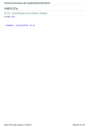 Verfahrenshinweise der Ausländerbehörde Berlin VAB D 27a D.27a. Zuständigkeit eines anderen Staates (2. ÄndG ; IntG ) ... weggefallen ... (vgl. jetzt § 29 Abs. 1 Nr. 1b) Dieses PDF wurde erstellt am: 01.06.2017 Seite 627 von 752