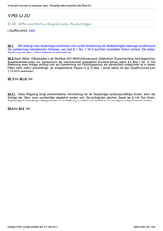 Verfahrenshinweise der Ausländerbehörde Berlin VAB D 30a D.30a. Beschleunigte Verfahren, besondere Aufnahmeeinrichtung (Asylpaket II; IntG ) 30a.0. Der mit dem Gesetz zur Einführung beschleunigter Asylverfahren (sog. Asylpaket II) eingeführte neue § 30a regelt das beschleunigte Asylverfahren für die in Abs. 1 näher bestimmten Personengruppen. Um die beschleunigten Verfahren durchführen zu können, bedarf es jeweils einer Vereinbarung zwischen dem Leiter des BAMF und der jeweiligen Landesregierung, in Berlin dem Senat bzw. dem zuständigen Senatsmitglied (vgl. § 5 Abs. 5). In Berlin ist eine solche besondere Aufnahmeeinrichtung noch nicht in Funktion. 30a.1. frei ' 30' a.2. Auf die Fälle, in denen das BAMF nicht innerhalb der Frist von einer Woche entscheidet und das Verfahren somit als Regelverfahren fortführt, findet Abs. 3 keine Anwendung. Für Personen aus sicheren Herkunftsstaaten ist in diesen Fällen allerdings § 47 Abs. 1a zu beachten ( vgl. D.47 ). 30a.3. Für Ausländer, deren Asylanträge im beschleunigten Verfahren bearbeitet und entschieden werden, gilt die Wohnverpflichtung in der besonderen Aufnahmeeinrichtung bis zum Abschluss des Verfahrens. Die Wohnverpflichtung gilt darüber hinaus bis zur Ausreise oder Abschiebung im Falle der Einstellung des Asylverfahrens sowie im Falle der Ablehnung des Asylantrags nach § 29 als unzulässig , nach § 29 a oder § 30 als offensichtlich unbegründet oder bei Asylfolgeanträgen, bei denen keine Gründe für eine Wiederaufnahme festgestellt werden (§ 71 Abs. 4). Mit dieser Regelung soll zum einen die Erreichbarkeit der Personen sichergestellt werden, deren Asylanträge im beschleunigten Verfahren bearbeitet werden. Zum anderen dient die Wohnverpflichtung dazu, eine raschere Beendigung des Aufenthalts unmittelbar aus der Aufnahmeeinrichtung heraus zu betreiben, wenn der Asylantrag abgelehnt oder das Verfahren eingestellt wurde. Das beschleunigte Verfahren gilt nicht für nach Berlin verteilte unbegleitete minderjährige Personen. Merke: Sofern die Durchführung des beschleunigten Verfahrens für eine bestimmte Personengruppe festgelegt ist, richtet sich die Verpflichtung, in einer besonderen Aufnahmeeinrichtung zu wohnen, an den Asylantragsteller, der in diese Gruppe fällt, selbst und ist nicht an die tatsächliche Unterbringung geknüpft. Sofern also gesetzliche Folgen an diese Verpflichtung knüpfen (vgl. § 59a, § 61), reicht die gesetzliche Verpflichtung aus, ohne dass es auf die tatsächliche Unterbringung in einer besonderen Aufnahmeeinrichtung ankommt. E-Mail an die VAB-Redaktion Dieses PDF wurde erstellt am: 01.06.2017 Seite 631 von 752