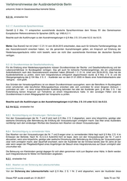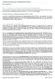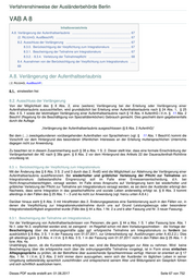 Verfahrenshinweise der Ausländerbehörde Berlin VAB A 8 Inhaltsverzeichnis A.8. Verlängerung der Aufenthaltserlaubnis ..................................................................... 67 (2. RiLiUmG; AuslBeschR) ........................................................................................ 67 8.2. Ausschluss der Verlängerung ............................................................................ 67 8.3.0. Berücksichtigung der Verpflichtung zum Integrationskurs ...................... 67 8.3.1. Bescheinigung der Teilnahme am Integrationskurs ................................ 67 8.3.2. - 8.3.4. Verletzung der Teilnahmepflicht ................................................. 68 8.4. Ausnahmen von der Berücksichtigung der Verpflichtung zum Integrationskurs ...... 69 A.8. Verlängerung der Aufenthaltserlaubnis ( 2. RiLiUmG; AuslBeschR ) 8.1. einstweilen frei 8.2. Ausschluss der Verlängerung Von der Möglichkeit des § 8 Abs. 2, eine (weitere) Verlängerung bei der Erteilung oder Verlängerung einer Aufenthaltserlaubnis auszuschließen, wird grundsätzlich bei Erteilung einer Aufenthaltserlaubnis nach § 24 Abs. 1, § 25 Abs. 4 S. 1 sowie der letztmaligen Verlängerung einer Aufenthaltserlaubnis nach § 18 Abs. 4 AufenthG i.V.m. § 11 Abs. 2 BeschV (Regelung für die Beschäftigung von Spezialitätenköchen) Gebrauch gemacht. Dies geschieht dann gegebenenfalls durch die Auflage „Verlängerung der Aufenthaltserlaubnis ausgeschlossen (§ 8 Abs. 2 AufenthG)“ Bei dem (…) zweckgebundenen vorübergehenden Aufenthalten von Sprachlehrern (vgl. § 11 Abs. 1 BeschV) kommt die Vorschrift vor dem Hintergrund des besonderen öffentlichen Interesses an der Erteilung muttersprachlichen Unterrichts dagegen nicht zur Anwendung. Zu beachten ist in diesem Zusammenhang auch § 38 a Abs. 1 S. 2. Dieser stellt klar, dass eine formale Einschränkung der Verlängerbarkeit der AE nach § 38a gem. § 8 Abs. 2 vor dem Hintergrund des Artikels 22 der Daueraufenthalt-Richtlinie unzulässig ist. 8.3. 0. Berücksichtigung der Verpflichtung zum Integrationskurs Mit der Änderung des § 8 Abs. 3 S. 2 und 3 durch das 2. ÄndG wird die Möglichkeit zur Ablehnung der Verlängerung einer Aufenthaltserlaubnis ausdifferenziert. Bei wiederholter und gröblicher Verletzung der Pflicht zur Teilnahme am Integrationskurs (tatbestandliche Eingrenzung) soll im Falle einer Ermessensentscheidung, d.h. bei Nicht-Anspruchsberechtigten, versagt werden. Im Falle eines Anspruchs auf Verlängerung kann bei wiederholter und gröblicher Verletzung der Pflicht zur Teilnahme am Integrationskurs versagt werden, es sei denn der Ausländer erbringt den Nachweis, dass seine Integration in das gesellschaftliche und soziale Leben anderweitig erfolgt ist. § 8 Abs. 3 kommt allerdings in den Fällen des § 25 Abs. 1 – 3 und 4a nicht zur Anwendung (vgl. hierzu unten A.8.4.) Darüber hinaus sieht § 8 Abs. 3 mit Inkrafttreten des 2. Änderungsgesetzes eine Sanktionierung auch in den Fällen vor, in denen die Verpflichtung zur Integrationskursteilnahme durch uns auf Grund Leistungsbezugs oder besonderer Integrationsbedürftigkeit angeordnet wurde (Fälle des § 44 a Abs. 1 Nr. 2 a und b alter Fassung und Nr. 3 neuer Fassung). 8.3.1. Bescheinigung der Teilnahme am Integrationskurs Vor der Verlängerung von Aufenthaltserlaubnissen von Personen, die gem. § 44 a Abs. 1 S. 1 alter Fassung bzw. Abs. 1 Nr.1. oder Nr.3. verpflichtet worden sind, ist zwingend - im Regelfall schon mit dem Vorladungsschreiben - die Vorlage der Bescheinigung über die ordnungsgemäße oder ggf. erfolgreiche Teilnahme am Integrationskurs zu fordern (so ausdrücklich § 8 Abs. 3 S. 1 in der Fassung vom 01.07.2011, zur Unterscheidung vgl. Ausführungen unter A.43.2.2.). Dies gilt allerdings gem. § 8 Abs. 4 i.V.m. § 8 Abs. 3 S. 1 in der Fassung vom 01.07.2011 nicht in den Fällen des § 25 Abs. 1 -3 bzw. Abs. 4a. Unabhängig davon, ob die Kursteilnahme erfolgreich war, sind die Bescheinigungen zur Akte zu nehmen. Wird keine Bescheinigung über die erfolgreiche noch über die ordnungsgemäße Teilnahme vorgelegt, ist in Form eines einfachen Alltagsgesprächs zu prüfen, ob der Betroffene über ausreichende Sprachkenntnisse verfügt. Hiervon ist orientiert an § 17 Abs. 1 Nr. 1 i.V.m. § 3 Abs. 2 IntV immer dann auszugehen, wenn sich der Ausländer im täglichen Leben in seiner Umgebung selbstständig sprachlich zurechtfinden und entsprechend seinem Alter und Bildungstand ein Gespräch führen und sich schriftlich ausdrücken kann. Dieses PDF wurde erstellt am: 01.06.2017 Seite 67 von 752