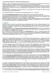 Verfahrenshinweise der Ausländerbehörde Berlin Teilnahme an berufsvorbereitenden oder –qualifizierenden Maßnahmen – kontinuierlich um eine Beschäftigung oder einen Ausbildungsplatz bemüht oder ein Vertrag über eine laufende oder demnächst zu beginnende berufsvorbereitende Maßnahme vorgelegt wird (bei berufsvorbereitenden Maßnahmen muss sich aus dem Vertrag der Inhalt und die Dauer der Maßnahme ergeben sowie ersichtlich sein, bis wann mit einer Entscheidung über die anschließende Aufnahme der eigentlichen Berufsausbildung zu rechnen ist), oder der Lebensunterhalt vollständig gesichert werden kann. Gleiches gilt, wenn der Ausländer noch keinen anerkannten schulischen oder beruflichen Bildungsabschluss erworben hat, sich aber aktuell in einer solchen Ausbildung befindet. Im Übrigen wird die Verlängerung nach dem üblichen Verfahren, d.h. mit schriftlicher Anhörung, versagt (zur Anwendung des § 35 Abs. 4 Satz 2 bzw. Abs. 5 s.u.). Der Betroffene kann sich bezüglich der Äußerung zu den für die Entscheidung erheblichen Tatsachen auch eines Mitgliedes der Härtefallkommission oder eines sonstigen Bevollmächtigten bedienen. Alle Vorschläge zu versagenden Entscheidungen werden vor Abgang der Referats- oder Abteilungsleitung m.d.B. um Billigung/Entscheidung vorgelegt. Bis zur Entscheidung erhalten die Betroffenen eine Fiktionsbescheinigung für 2 Monate. Gegen versagende Bescheide kann Fachaufsichtsbeschwerde bei der Senatsverwaltung für Inneres und Sport eingelegt werden. Die Einlegung der Beschwerde rechtfertigt weder die Erteilung einer Fiktionsbescheinigung noch einer Duldung. Besondere Umstände des Einzelfalls, die die Versagung zu einer außergewöhnlichen Härte machten oder zu nicht zu vertretenden Ausreisehindernissen führen, wird ggf. durch Erteilung eines Titels gem. § 25 Abs. 4 Satz 2 bzw. § 25 Abs. 5 Rechnung getragen. In diesen Fällen bedarf es keiner Vorlage an die Referats- oder Abteilungsleitung bzw. die zu schaffende zentrale Stelle. 23a.2.2 . bis 23a.3.2. frei Dieses PDF wurde erstellt am: 05.08.2016 Seite 198 von 750