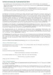 Verfahrenshinweise der Ausländerbehörde Berlin die Verpflichtung der Erziehungsberechtigten und der aufenthaltsrechtlich Verfahrensfähigen, den durchgehenden Besuch einer Schule sowie ggf. das Bemühen um Aufnahme bzw. Fortsetzung einer angemessenen Ausbildung der Kinder sicherzustellen, die Verpflichtung der Erziehungsberechtigten, den Besuch einer Kindertagesstätte für alle Kinder, die das zweite Lebensjahr zum Zeitpunkt der Erteilung der Aufenthaltserlaubnis vollendet haben bzw. während der Gültigkeit der Aufenthaltserlaubnisse vollenden, ohne schulpflichtig zu sein, sicherzustellen. Die Möglichkeit für alle Kinder ab Vollendung des zweiten Lebensjahres, einen Kindergarten zu besuchen, ergibt sich aus dem Schreiben der Senatsverwaltung für Inneres und Sport vom 04.12.2006, namentlich aus dem Verweis auf § 4 Abs. 3 des Kindertagesbetreuungsreformgesetzes. Dort heißt es: „Für Kinder, die das zweite Lebensjahr vollendet haben, liegt regelmäßig ein Bedarf zumindest für eine Halbtagsförderung in einer Tageseinrichtung vor, wenn die Förderung für die sprachliche Integration erforderlich ist.“ Die Erfüllung eines Anspruchs oder Förderungsbedarfs setzt allerdings einen vorherigen Antrag und die Feststellung nach § 7 des Kindertagesbetreuungsreformgesetzes voraus. Zuständig sind die Jugendämter der Bezirke. Es ist davon auszugehen, dass diese Voraussetzungen des § 4 Abs. 3 des Kindertagesbereuungsreformgesetzes von den Betroffenen stets erfüllt werden. Eine Betreuung durch Tagesmütter ist nicht ausreichend, da nicht sichergestellt ist, dass damit die integrationspolitische Zielsetzung der Vereinbarung erfüllt wird. Bei Familien sind alle Mitglieder in die gemeinsame Integrationsvereinbarung aufzunehmen. Diese ist dann von allen aufenthaltsrechtlich verfahrensfähigen Familienmitgliedern zu unterzeichnen. Alle Unterzeichner erhalten eine Durchschrift der Vereinbarung und sollen den Erhalt quittieren. Bei rechtsanwaltlich Vertretenen ist in jedem Fall der Rechtsanwalt einzubeziehen. Volljährige Kinder unterzeichnen eine eigene Integrationsvereinbarung. Das Integrationsgespräch und die Vorbereitung der Vereinbarung erfolgt in gesonderten Räumlichkeiten nach Terminvereinbarung. Die Einladung ergeht im Falle anwaltlicher Vertretung über den Rechtsanwalt. In dem Schreiben wird auf den möglichen Inhalt der Integrationsvereinbarung sowie darauf hingewiesen, dass alle Betroffenen erscheinen müssen und – so notwendig – für einen Sprachmittler zu sorgen ist. Die Verlängerung setzt regelmäßig voraus, dass alle sich aus der Integrationsvereinbarung ergebenden Verpflichtungen - auch von den anderen Familienmitgliedern – unter Berücksichtigung der Verlängerungsregelungen der §§ 104a, 104b erfüllt sind. Ist dies nicht der Fall, ist in Hinblick auf die integrationspolitische Zielsetzung der Regelung von einem atypischen Fall auszugehen und das von §104a Abs. 5 Satz 2 bzw. § 104 a Abs. 6 eröffnete Ermessen zu Lasten der Betroffenen auszuüben. Beispielhafte Muster für eine Integrationsvereinbarung finden sich am Ende dieser Weisung. 104a.4.2. Nebenbestimmungen Die Aufenthaltserlaubnis nach § 104a bzw. § 23 Abs.1 i.V.m. § 104a berechtigt in allen vier Fallgruppen unbeschränkt zur Erwerbstätigkeit. Sie ist mit dem Eintrag "Erwerbstätigkeit gestattet." zu versehen. Die bei der Ersterteilung verfügte auflösende Bedingung "Erlischt mit dem Bezug von Leistungen nach dem SGB XII." ist in Verlängerungsfällen nicht mehr zu verfügen. Weiter wird in allen Fällen die Auflage "Wohnsitznahme im Land Berlin erforderlich“ verfügt (vgl. hierzu im Einzelnen A.12.2.2.) 104a.5. Ersterteilungsdauer § 104a Abs. 5 Satz 1 regelt die Dauer der Aufenthaltserlaubnis bei der Ersterteilung für alle vier Fallgruppen des §104a bzw. § 23 Abs. 1 i.V.m. § 104a. Aus verwaltungspraktischen Gründen war eine Erteilung aller Aufenthaltserlaubnisse bis zum 31.12.2009 wie vom Gesetzgeber vorgesehen unmöglich. So hätte am 01.01.2010 über eine Vielzahl von Verlängerungsanträgen gleichzeitig entschieden werden müssen. Entsprechend den zeitlichen Vorstellungen des Gesetzgebers war die ersterteilte Aufenthaltserlaubnis anknüpfend an das Inkrafttreten der gesetzlichen Bleiberechtsregelung am 01.09.2007 daher in allen vier Fallvarianten des § 104a regelmäßig für zunächst 2 Jahre und vier Monate bzw. 28 Monate zu erteilen. Eine Ausnahme galt nur dann, wenn zum Zeitpunkt der Dieses PDF wurde erstellt am: 05.08.2016 Seite 472 von 750