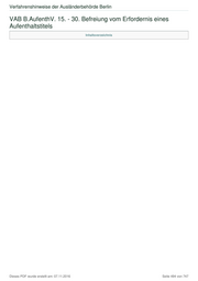 Verfahrenshinweise der Ausländerbehörde Berlin VAB B.AufenthV. 15. - 30. Befreiung vom Erfordernis eines Aufenthaltstitels Inhaltsverzeichnis Dieses PDF wurde erstellt am: 07.11.2016 Seite 494 von 747