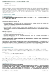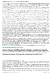 Verfahrenshinweise der Ausländerbehörde Berlin VAB A 7 Inhaltsverzeichnis A.7. Aufenthaltserlaubnis ......................................................................................................................................................... 61 7.1.3. Erteilungsvoraussetzungen ..................................................................................................................................... 61 Erwerbstätige mit Rentenanspruch ............................................................................................................................. 61 Erwerbstätige ohne Rentenanspruch .......................................................................................................................... 62 Nichterwerbstätige mit Niederlassungsabsicht ........................................................................................................... 62 Forschungstätigkeit ..................................................................................................................................................... 62 Writers in Exile (PEN) ................................................................................................................................................. 62 Aus-und Weiterbildung an einer Einrichtung ............................................................................................................... 62 Ausländer mit abgelaufener Aufenthaltserlaubnis ...................................................................................................... 62 Krankenhauspatienten ................................................................................................................................................ 62 7.2.1. Zur Geltungsdauer von Aufenthaltserlaubnissen .................................................................................................... 63 7.2.1.0. Allgemeines ................................................................................................................................................... 63 7.2.1.1. Aufenthaltserlaubnisse zum Zweck der Beschäftigung (§§ 18, 18a) ............................................................. 63 7.2.1.2 Aufenthaltserlaubnisse aus völkerrechtlichen, humanitären oder politischen Gründen (§§ 23 – 26) ............. 63 7.2.1.3. Aufenthaltserlaubnisse zum Familiennachzug (§§ 27 ff.) .............................................................................. 64 7.2.2. Nachträgliche Verkürzung der Geltungsdauer der Aufenthaltserlaubnis ................................................................ 65 7.2.2.1. Zu Verwaltungsstreitverfahren betreffend Verkürzungsbescheid bei Ablauf der (verkürzten) Aufenthaltserlaubnis ................................................................................................................................................... 65 7.2.2.2. Hinweise zur Rücknahme nach § 48 Abs. 1 VwVfG ...................................................................................... 65 A.7. Aufenthaltserlaubnis ( 15.03.2016; 02.11.2016) 7.1.1. Die Aufenthaltserlaubnis ist der befristete Aufenthaltstitel (im Gegensatz zur Niederlassungserlaubnis). Sie ersetzt die befristete Aufenthaltserlaubnis, Aufenthaltsbewilligung und Aufenthaltsbefugnis nach altem Recht. In den Etiketten ist der maßgebliche Paragraph für die Erteilung (Rechtsgrundlage) zu benennen (§ 59 Abs. 3 AufenthV). 7.1.2. einstweilen frei 7.1.3. Erteilungsvoraussetzungen Ein Aufenthaltstitel nach § 7 Abs. 1 S. 3 kann nur in den Fällen erteilt werden, in denen der beabsichtigte Aufenthaltszweck im Aufenthaltsgesetz nicht geregelt ist (vgl. z.B. VG Berlin, Urteil vom 05.03.2009 - VG 15 A 172.08). Damit ist insbesondere die Erteilung einer entsprechenden Aufenthaltserlaubnis zum Zweck der Beschäftigung ausgeschlossen. Die Vorschrift des § 7 Abs. 1 S. 3 kann nicht herangezogen werden, wenn der eigentliche Zweck des Aufenthalts geregelt ist und der Betreffende lediglich die Sondervoraussetzungen nicht erfüllt (z.B. Familiennachzug zu einem Diplomaten). Merke : Mit der Dominikanischen Republik, Indonesien, dem Iran, Japan, den Philippinen, Sri Lanka, den USA und der Türkei bestehen jeweils Handels- und Wirtschaftsabkommen die bei der Prüfung nach § 7 Abs. 1 Satz 3 AufenthG relevant sein können. Beantragt ein Angehöriger der genannten Staaten einen Titel nach § 7 Abs. 1 S. 3 und liegt tatsächlich keinerlei anderer Aufenthaltszweck vor (z.B. Familiennachzug zu entfernten Verwandten, Sprachkurs, Erwerbstätigkeit im benachbarten Ausland, nur zeitweiser Aufenthalt und Aufrechterhaltung eines anderen Wohnsitzes….), woran die meisten Anträge scheitern dürften, so ist auch das jeweilige Abkommen in die Prüfung mit einzubeziehen. In diesem Zusammenhang müssen dann bei einer Versagung auch die persönlichen Belange des Antragstellers wohlwollend in Rechnung gestellt werden (Wohlwollensklausel). Dessen Belange, wie etwa seine wirtschaftliche und soziale Integration im Bundesgebiet, frühere Aufenthalte (Verwurzelung) sind hier mit dem jeweiligen öffentlichen Interessen wie sie etwa in § 1 Abs. 1 S. 1 und 2, § 5, § 11 zum Ausdruck kommen, abzuwägen. Überwiegt das öffentliche Interesse, sind in dem versagenden Bescheid entsprechende Ausführungen zu machen. Erwerbstätige mit Rentenanspruch § 7 Abs. 1 S. 3 kommt dagegen zur Anwendung, wenn ein hier erwerbstätiger Ausländer, der eine Aufenthaltserlaubnis nach § 18, §§ 20, 21 AufenthG besitzt, aus dem Erwerbsleben dauerhaft ausscheidet und hier eine Rente eines Leistungsträgers im Bundesgebiet bezieht. So soll in diesen Fällen mit Erreichen des Rententrittsalter (Vollendung des 67. Lebensjahre -derzeitige Regelaltersgrenze gem. § 35 SGB VI) oder auch bei einem früherem dauerhaften Ausscheiden aus dem Erwerbsleben im Rahmen einer Vorruhestandsregelung oder beim Ausscheiden auf Grund einer vollen Erwerbsminderung (Arbeitsunfall, Berufskrankheit) die Ertei