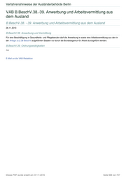Verfahrenshinweise der Ausländerbehörde Berlin VAB B.BeschV.38.-39. Anwerbung und Arbeitsvermittlung aus dem Ausland B.BeschV.38. - 39. Anwerbung und Arbeitsvermittlung aus dem Ausland 26.11.2013 B.BeschV.38. Anwerbung und Vermittlung Für eine Beschäftigung in Gesundheits- und Pflegeberufen darf die Anwerbung in sowie eine Arbeitsvermittlung aus den in der Anlage zu § 38 BeschV aufgeführten Staaten nur durch die Bundesagentur für Arbeit durchgeführt werden. B.BeschV.39. Ordnungswidrigkeiten frei E-Mail an die VAB-Redaktion Dieses PDF wurde erstellt am: 07.11.2016 Seite 568 von 747