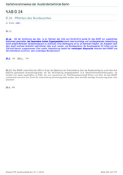 Verfahrenshinweise der Ausländerbehörde Berlin VAB D 24 D.24. Pflichten des Bundesamtes (2. ÄndG ; IntG ) 24.1.1. 24.1a. Mit der Einführung des Abs. 1a im Rahmen des IntG zum 06.08.2016 wurde für das BAMF ein zusätzliches Instrument geschaffen, bei besonders hohen Zugangszahlen durch eine kurzfristige und vorübergehende Unterstützung durch andere Behörden Verfahrensdauern zu verkürzen. Eine Übertragung ist nur an Behörden möglich, die Aufgaben nach dem AsylG und/oder AufenthG wahrnehmen (also auch Landes- und Bundespolizei), die Bundesagentur für Arbeit und der Zoll sind hiervon ausgenommen. Eine solche Unterstützung bedarf der vorherigen Absprache zwischen dem BAMF und dem betroffenen Land bzw. dem zuständigen Bundesressort. 24.2. bis 24.3.1. frei 24.3.2. Das BAMF unterrichtet die ABH im Zuge der Mitteilung der Entscheidung über die Asylberechtigung auch über ihm bekannt gewordene Ausschlussgründe, die der AE-Erteilung entgegenstehen (z.B. Menschenrechtsverletzungen). Es handelt sich dabei regelmäßig um Fälle, die zum Ausschluss der Flüchtlingseigenschaft führen und über die das BAMF umfassende Kenntnis hat. Durch die Unterrichtung soll sichergestellt werden, dass die ABH wichtige Ausschlussgründe nicht übersieht. 24.4. frei Dieses PDF wurde erstellt am: 07.11.2016 Seite 624 von 747
