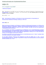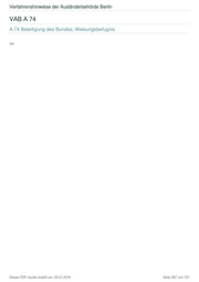 Verfahrenshinweise der Ausländerbehörde Berlin VAB A 74 A.74 Beteiligung des Bundes; Weisungsbefugnis frei Dieses PDF wurde erstellt am: 05.01.2016 Seite 387 von 727