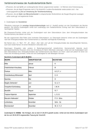 Verfahrenshinweise der Ausländerbehörde Berlin BEZIRK GEBURTSDATUM BUCHSTABE Mitte 01.01. – 17.02. A, B, C Pankow 18.02. – 04.03. und D, S - Schu, W 29.09. - 30.10. Friedrichshain-Kreuzberg 05.03. – 05.04. E, F Charlottenburg-Wilmersdorf 06.04. – 21.04. und G, K 08.05. - 23.05. Spandau 22.04. – 07.05. H Steglitz-Zehlendorf 24.05. – 08.06. und L, N 25.06. - 10.07. Tempelhof-Schöneberg 09.06. – 24.06. und M, Schv - Sz 11.07. - 26.07. Neukölln 27.07. – 11.08. P Treptow-Köpenick 12.08. – 12.09. Q, R, T Lichtenberg 13.09. – 28.09. und J, U,V 02.12. - 16.12. Reinickendorf 31.10. – 15.11. O Marzahn-Hellersdorf 16.11. – 01.12. und I, X, Y, Z 17.12. - 31.12. 90.4. Übermittlungspflichten bei Zeuginnen und Zeugen 90.4 . § 90 Abs. 5 sieht Übermittlungspflichten der Ausländerbehörde gegenüber Polizei, Staatsanwaltschaft und Strafgericht bei ausländerrechtlichen Maßnahmen im Zusammenhang mit der Opferschutz - bzw. Sanktions richtlinie vor (vgl. hierzu A.25.4a und b.). 90.4.1. bis 90.4.3. frei 90.5. siehe A.27.1a. Dieses PDF wurde erstellt am: 05.01.2016 Seite 418 von 727