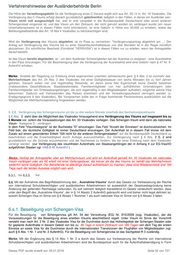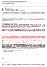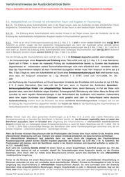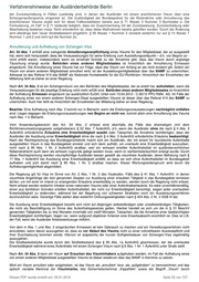 Verfahrenshinweise der Ausländerbehörde Berlin Gesamtaufenthaltsdauer von 90 Tage in einem Zeittraum von 180 Tagen vom Tag der ersten Einreise an verlängert werden. Flughafentransitvisa sind nicht verlängerbar. 6.2.1. Verlängerung des Schengen-Visums Die Verlängerung des Schengen-Visums kommt nur ausnahmsweise in Betracht, wenn sich nach der Erteilung des Visums neue Tatsachen ergeben haben, der Antrag begründet ist (insbesondere höhere Gewalt oder humanitäre Gründe - Art. 33 Abs. 1 - bzw. schwerwiegenden persönliche Gründe - Art. 33 Abs. 2 Visakodex), keine Änderung des Aufenthaltszwecks beabsichtigt ist. Wenn diese Ausnahmegründe vorliegen, kann die Gültigkeit eines für einen kürzeren Zeitraum als 90 Tage erteilten Visums für eine Aufenthaltsdauer von höchstens 90 Tage in einem Zeittraum von 180 Tagen von dem Tag der ersten Einreise an verlängert werden, vorausgesetzt, dass der Lebensunterhalt während der Dauer des beabsichtigten Aufenthalts gesichert ist. Die Aufnahme einer Erwerbstätigkeit ist durch Auflage auszuschließen, sofern die Auslandsvertretung die Auflage nicht bereits verfügt hatte. Gründe für eine Ausnahme liegen z.B. vor bei eilbedürftiger ärztlicher Behandlung oder Reiseunfähigkeit des Antragstellers, bei plötzlicher Erkrankung oder sonstigem besorgniserregenden Ereignis bei nahen Familienangehörigen oder bei dringenden geschäftlichen oder beruflichen Gründen, die vor der Einreise nicht abschätzbar waren. Das für die Angehörigen bestimmter Staaten bzw. Inhaber bestimmter Pässe bestehende "Konsultationsverfahren" nach Art. 22 Visakodex sieht vor, dass die zentralen Behörden von der ausstellenden Auslandsvertretung zu konsultieren sind. Diese Konsultation erfolgt grds. über das Visainformationssystem - VIS - per VIS-Mail. Zum gegenwärtigen Zeitpunkt besteht die Möglichkeit der Konsultation auf technischem Weg zunächst nur bezogen auf den nordafrikanischen Raum (s. hierzu nachfolgend 6.s.2.). In den Fällen des Art. 22 Visakodex darf ein Visum nur in besonderen Ausnahmefällen und in der Regel nur als nationales Visum mit dem Zusatz auf einem gesonderten Etikett "Gilt nicht für die anderen Schengenstaaten" verlängert werden. Wird ein solches Visum aus besonderen Gründen ausnahmsweise nicht als nationales Visum verlängert, ist bis auf weiteres - so eine Unterrichtung über VIS-Mail noch nicht möglich ist - wie bisher in den Fällen, in denen ein anderer Staat das Schengen-Visum ausgestellt hat, das Auswärtige Amt, Postfach 11 48, 53001 Bonn, zu unterrichten, das die zentrale Behörde des visumsausstellenden Staates informiert. Die Mitteilung muss die Personalien, Art und Nummer des Reisedokuments, Nummer der Visamarke, Visakategorie, Datum und Ort der Visumsstellung und die verlängerte Gültigkeits- und Aufenthaltsdauer enthalten. Die Verlängerung eines C-Visums als C-Visum erfolgt auf dem dafür vorgesehenen Klebeetikett. Beim Ausfüllen des Etiketts ist folgendes zu beachten: In dem Feld "Dauer des Aufenthalts ...Tage" ist die Zahl der Tage, um die das Visum verlängert wird, mit zwei Ziffern anzugeben, bei Verlängerung um weniger als 10 Tage ist die erste Ziffer eine Null. Gleiches gilt für die Eintragung des Datums im Feld "Gültigkeitsdauer", wobei Tages-, Monats- und Jahreszahl (zweistellig) mit Bindestrichen getrennt werden (z.B. 15-04-10). Die Felder betr. die räumliche Gültigkeit, die Zahl der Einreisen und die Art des Visums sind in der Regel entsprechend den Eintragungen in dem ursprünglichen Visum auszufüllen. Werden eine oder mehrere zusätzliche Einreise(n) gestattet, ist auch diese Zahl zweistellig einzutragen. Die Erwerbstätigkeit ist durch Auflage auszuschließen. Die Gesamtgültigkeit als "C-Visum" darf 90 Tage pro Halbjahr nicht überschreiten. Bei Verlängerung des C-Visums bis zu 3 Monaten mit Beschränkung auf einen Teil des Schengenraumes ist in dem Feld "gültig für" unter Nennung der ausgenommenen Schengenstaaten einzutragen: "mit Ausnahme von ...". Bei Beschränkung des C-Visums auf die Bundesrepublik Deutschland ist das Länderkennzeichen "DE" einzutragen. In dem Feld "Visumkategorie" jeweils der Buchstabe "C". Eine etwaige räumliche Beschränkung eines Visums ist nicht zu streichen, weil in diesen Fällen davon auszugehen ist, dass die Einreisevoraussetzungen nach Art. 5 Abs. 1 Grenzkodex nicht erfüllt waren und das Visum für den angegebenen Staat nur ausnahmsweise erteilt wurde. Alle Angaben sind auf dem Etikett aufzudrucken. Handschriftliche Änderungen dürfen nicht vorgenommen werden. Wird auf einem Etikett ein Irrtum festgestellt, so wir das Etikett durch ein Kreuz ungültig gemacht und ein neues Etikett angebracht (Art. 27 Abs. 3 i.V.m. Art. 28 Abs. 1 Visakodex). Dieses PDF wurde erstellt am: 05.01.2016 Seite 51 von 727
