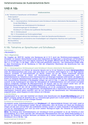 Verfahrenshinweise der Ausländerbehörde Berlin VAB A 16b Inhaltsverzeichnis A.16b. Teilnahme an Sprachkursen und Schulbesuch ............................................................................................................. 133 Änderungsdatum ................................................................................................................................................................ 590 16b.0. Allgemeines ............................................................................................................................................................. 133 16b.1.1. Intensivsprachkurs, Schüleraustausch sowie Schulbesuch inklusive vollschulischer Berufsausbildung ...... 133 Au-pair-Beschäftigung ......................................................................................................................................... 133 Grundsätzlich kein Aufenthaltsrecht für Schulbesuch ......................................................................................... 133 Ausnahmenregelungen für Schulbesuch ............................................................................................................. 133 Schulbesuch zum Zwecke einer qualifizierten Berufsausbildung ........................................................................ 134 16b.1.2. Schüleraustausch ......................................................................................................................................... 134 16b.1.3. Einverständnis der Erziehungsberechtigten ................................................................................................. 135 16b.2. Erwerbstätigkeit während des Aufenthaltes zum Zweck des Sprachkurses/Schulbesuchs .................................... 135 16b.3. Arbeitsplatzsuche und Aufnahme einer Erwerbstätigkeit nach erfolgreichem Abschluss einer qualifizierten Berufsausbildung ............................................................................................................................................................... 135 16b.4. Zweckwechsel ......................................................................................................................................................... 136 A.16b. Teilnahme an Sprachkursen und Schulbesuch Änderungsdatum ( RiLiUmsG2017 ) 16b.0. Allgemeines Die Vorgaben der REST-RL machten eine Neufassung der § 16 ff. durch das Richtlinienumsetzungsgesetz 2017 erforderlich. Zur besseren Übersichtlichkeit wurden daher insbesondere die Regelungen zu Sprachkursen und Schulbesuch aus § 16 herausgenommen und in einer eigenen Vorschrift (§ 16b) geregelt. Während nach der alten Rechtslage gem. § 16 Abs. 5 S. 2 i.V.m. Abs. 2 in der Regel – außer im Falle eines gesetzlichen Anspruchs – kein Zweckwechsel erfolgen sollte, ist diese Einschränkung mit der Neufassung im Falle des erfolgreichen Abschlusses des Sprachkurses bzw. des Schulbesuchs entfallen. 16b.1.1. Intensivsprachkurs, Schüleraustausch sowie Schulbesuch inklusive vollschulischer Berufsausbildung Eine Aufenthaltserlaubnis zum Erlernen der deutschen Sprache wird nur für die Teilnahme an einem Intensivsprachkurs erteilt. Ein Intensivsprachkurs setzt voraus, dass seine Dauer von vornherein zeitlich begrenzt ist, in der Regel täglichen Unterricht (mindesten 18 Unterrichtsstunden pro Woche) umfasst und auf den Erwerb umfassender deutscher Sprachkenntnisse gerichtet ist. Abend- und Wochenendkurse erfüllen diese Voraussetzungen nicht. Eine Aufenthaltserlaubnis zur Teilnahme an einem Intensivsprachkurs soll denjenigen Ausländern erteilt werden, die lediglich den Erwerb von deutschen Sprachkenntnissen anstreben, wenn sie über ausreichende Mittel für ihren Lebensunterhalt während ihres voraussichtlichen Aufenthalts im Bundesgebiet verfügen (vgl. auch § 5 Abs. 1), wobei eine Verpflichtung nach § 68 ausreicht. Ist das Ausbildungsziel nach Ablauf der Geltungsdauer der Aufenthaltserlaubnis noch nicht erreicht und besteht aufgrund vorliegender Unterlagen der Bildungseinrichtung die Aussicht, dass es noch erreicht werden kann, soll die Aufenthaltserlaubnis längstens bis zur Gesamtgeltungsdauer von zwölf Monaten verlängert werden. Erfolgte die Einreise mit dem Ziel der ärztlichen Weiterbildung und ist der vorangehende Sprachkurs innerhalb des Zeitraumes von 12 Monaten noch nicht abgeschlossen, weil beispielsweise das C1-Sprachniveau noch nicht erreicht ist, ein angemessener Fortschritt jedoch ersichtlich, kann bis zum Abschluss des Spracherwerbs eine Fiktionsbescheinigung ausgestellt werden, jedoch längstens für einen Zeitraum von 6 Monaten. Au-pair-Beschäftigung Unproblematisch ist es, wenn dem Aufenthalt zum Zwecke eines Sprachkurses eine Au-pair-Beschäftigung gem. § 12 BeschV voranging, solange der Sprachkurs den o.g. Voraussetzungen gerecht wird. In einem solchen Fall bedarf es gem. § 39 S. 1 Nr. 1 AufenthV auch nicht der vorherigen Ausreise. Grundsätzlich kein Aufenthaltsrecht für Schulbesuch Grundsätzlich werden Aufenthaltserlaubnisse zum Schulbesuch (z.B. allgemeinbildende Schulen) nicht erteilt, soweit es sich nicht um einen Schüleraustausch handelt. Dies gilt insbesondere, wenn die Einreise zum Zweck des Schulbesuchs erfolgen soll oder wenn nicht die Eltern des ausländischen Schülers, sondern nur andere Verwandte im Bundesgebiet leben und sich ein Aufenthaltsrecht auch nicht aus einem anderen Rechtsgrund ergibt. Die Teilnahme am Schulunterricht begründet kein Aufenthaltsrecht. Merke: Die Erteilung einer Aufenthaltserlaubnis zum Schulbesuch kommt grundsätzlich nur für die Teilnahme an einer Schulausbildung, die zu einem nationalen oder internationalen Bildungsabschluss führt bzw. BAföG-förderungsfähig ist, in Betracht. Die Teilnahme an einzelnen Seminaren und Modulen, die zu keinem anerkannten Abschluss führt, stellt keinen Schulbesuch i.S.d. § 16b Abs. 1 dar. Ausnahmenregelungen für Schulbesuch Dieses PDF wurde erstellt am: 23.10.2017 Seite 133 v