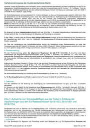 Verfahrenshinweise der Ausländerbehörde Berlin VAB A 24 A.24. Aufenthaltsgewährung zum vorübergehenden Schutz (2. ÄndG; 13.11.2009 - VwV) 24. 0. § 24 beruht im Wesentlichen auf der EU-Richtlinie zur Aufnahme von Flüchtlingen im Falle eines Massenzustroms. Die Aufnahme nach § 24 bedarf immer eines Beschlusses des Rates der EU (§ 24 Abs. 1). Für nationale Alleingänge gilt § 23 Abs. 3. Der Ausländer hat jederzeit die Möglichkeit, die Verlegung seines Wohnsitzes in einen anderen EU-Mitgliedstaat bei der Ausländerbehörde zu beantragen. Ausweislich der §§ 42 ff. AufenthV leitet die Ausländerbehörde den Antrag lediglich an das BAMF weiter, welches wiederum das Einverständnis des jeweiligen Mitgliedstaates einholt (zum weiteren Verfahren bei Erteilung des Einverständnisses vgl. §§ 42 f. AufenthV; für die dann durch die Ausländerbehörde auszustellende Bescheinigung sieht die Richtlinie ein entsprechendes Muster vor; vgl. auch § 4 Abs. 1 Nr. 7 AufenthV). Die Zustimmung des EU- Mitgliedstaates, in den die Verlegung des Wohnsitzes beantragt wird, ist nach der Stellungnahme des BMI vom 27.10.2004 notwendige Voraussetzung für einen positiven Bescheid. 24.1. bis 24.3.1. frei 24.3.2. Die Kontingentregelung des § 24 Abs. 3 S.2 regelt lediglich die Möglichkeit der freiwilligen Aufnahme bestimmter Kontingente im Rahmen der Verteilung unter den Ländern. 24.3.3. bis 24.3.4. frei 24.4.1. § 50 Abs. 4 AsylVfG kommt für eine landesinterne Verteilung entsprechend zur Anwendung. 24.4.2. bis 24.4.4. frei 24.5. Abs. 5 regelt den Wohnsitz und gewöhnlichen Aufenthalt des Aufgenommen. Aufenthaltsbeschränkung und Wohnsitzauflage sind zwingend. 24.6. frei 24.7. Mit Abs. 7 wird der Unterrichtungspflicht gemäß Art. 9 der Richtlinie nachgekommen. Die Zuständigkeit für die Unterrichtung liegt gem. § 71 Abs. 1 bei den Ausländerbehörden. Kategorie:VAB Dieses PDF wurde erstellt am: 23.10.2017 Seite 222 von 791