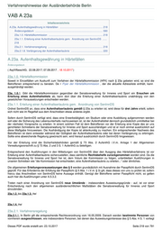 Verfahrenshinweise der Ausländerbehörde Berlin VAB A 23a Inhaltsverzeichnis A.23a. Aufenthaltsgewährung in Härtefällen ............................................................. 218 Änderungsdatum ................................................................................................ 590 23a.1.0. Härtefallkommission ............................................................................. 218 23a.1.1. Erteilung einer Aufenthaltserlaubnis gem. Anordnung von SenInnDS ...... 218 23a.2.1. Verfahrensregelung .............................................................................. 218 23a.2.1.8. Verlängerung der Aufenthaltserlaubnis ............................................. 220 A.23a. Aufenthaltsgewährung in Härtefällen Änderungsdatum ( AsylVfbeschlG; 22.08.2017; 07.09.2017 , 18.10.2017 ) 23a.1.0. Härtefallkommission Soweit in Einzelfällen um Auskunft zum Verfahren der Härtefallkommission (HFK) nach § 23a gebeten wird, so sind die Betroffenen entsprechend zu beraten. De r Flyer der Härtefallkommission , der die aktuelle Adressliste enthält, kann ausgehändigt werden. 23a. 1.0.1. Gibt die Härtefallkommission gegenüber der Senatsverwaltung für Inneres und Sport ein Ersuchen um Erteilung eines Aufenthaltstitels ab, kann dort über die Erteilung einer Aufenthaltserlaubnis unabhängig von den gesetzlichen Voraussetzungen entschieden werden. 23a.1.1. Erteilung einer Aufenthaltserlaubnis gem. Anordnung von SenInnDS Ordnet SenInnDS an, dass eine Aufenthaltserlaubnis gemäß § 23a zu erteilen ist, wird diese für drei Jahre erteilt, sofern sich nicht wie im Regelfall aus dem Anschreiben etwas anderes ergibt. Sofern durch SenInnDS verfügt wird, dass eine Erwerbstätigkeit, ein Studium oder eine Ausbildung aufgenommen werden soll oder die Sicherung des Lebensunterhalts nachzuweisen ist, ist der Aufenthaltstitel dennoch grundsätzlich unmittelbar bei der nächsten Vorsprache zu erteilen. In einem solchen Fall ist dem Betroffenen vor der Erteilung eine Kopie des an uns gerichteten Schreibens der Senatsverwaltung für Inneres und Sport auszuhändigen und ist er noch einmal ausdrücklich auf diese Maßgabe hinzuweisen. Die Aushändigung der Kopie ist aktenkundig zu machen. Ein entsprechender Nachweis des Betroffenen ist dann entweder während der Gültigkeit der Aufenthaltserlaubnis oder bei deren Verlängerung zu erbringen. Sollte eine abweichende Regelung gewünscht sein, wird hierauf ausdrücklich durch SenInnDS hingewiesen. Vor der Erteilung sind die Sicherheitsbehörden gemäß § 73 Abs. 2 AufenthG i.V.m. Anlage 1 der Allgemeinen Verwaltungsvorschrift zu § 73 Abs. 2 und 3 S. 1 AufenthG zu beteiligen. Entsprechend den Ausführungen in den Mitteilungen von SenInnDS über den Ausgang des Härtefallverfahrens ist vor Erteilung einer Aufenthaltserlaubnis sicherzustellen, dass sämtliche Rechtsbehelfe zurückgenommen worden sind. Da die Senatsverwaltung für Inneres und Sport frei ist, dem Votum der Kommission zu folgen, unterbleiben Ausführungen in unseren Schreiben wie "die Kommission hat entschieden, eine Aufenthaltserlaubnis zu erteilen..." oder ähnliches. Die allgemeinen Erteilungsvoraussetzungen des § 5 werden grundsätzlich mit Ausnahme der Passpflicht durch SenInnDS geprüft. Für das Erfordernis der Erfüllung der Passpflicht (§ 5 Abs. 1 i.V.m. § 3) gilt, dass dieses von uns zu prüfen ist, sofern hierzu das Anschreiben von SenInnDS keine Aussage enthält. Genügt der Betroffene seiner Passpflicht nicht, so gelten auch hier die Ausführungen unter A.5.3.2. Treten nach einer Anordnung von SenInnDS neue Umstände - insbesondere Ausweisungsgründe - auf, ist vor einer Entscheidung nach den allgemeinen ausländerrechtlichen Maßstäben die Senatsverwaltung für Inneres und Sport einzubinden. 23a.1.2. bis 23a.1.3. frei 23a.1.4. frei 23a.2.1. Verfahrensregelung 23a.2.1.1. In Berlin gilt die entsprechende Rechtsverordnung vom 16.05.2009. Danach werden bestimmte Personen von vornherein ausgeschlossen, wie insbesondere Personen, bei denen das Ausweisungsinteresse des § 5 Abs. 4 S. 1 vorliegt Dieses PDF wurde erstellt am: 23.10.2017 Seite 218 von 791
