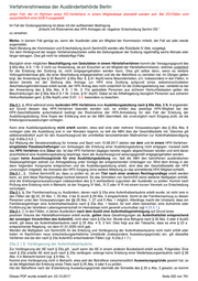 Verfahrenshinweise der Ausländerbehörde Berlin eine Verlängerung für diesen nicht in Betracht. Ehegatten, Lebenspartner einer gleichgeschlechtlichen Lebensgemeinschaft und minderjährige ledige Kinder sollten nicht von dem Fehlverhalten betroffen sein und grundsätzlich den Titel verlängert bekommen. Dies gilt nicht bei minderjährigen ledigen Kindern von Alleinerziehenden. Hier folgt das aufenthaltsrechtliche Schicksal dem allein personensorgeberechtigten Elternteil. Soweit vorgegebene Vorbehalte für die Verlängerung insbesondere bzgl. der Arbeitsaufnahme und/oder Lebensunterhaltssicherung nicht erfüllt werden, ist dies für junge Erwachsene immer unbeachtlich, wenn sich der Betroffene (bei Familien mindestens ein Elternteil) in einer Ausbildung befindet, die zu einem anerkannten schulischen oder beruflichen Bildungsabschluss oder einen Hochschulabschluss führt (sofern die Betroffenen erwerbstätig sind, genügt auch der Besuch einer Abendschule; Verlängerung für die Dauer der Ausbildung plus drei Monate, max. 2 Jahre); oder er einer Vollerwerbstätigkeit nachgeht (mind. 35 Wochenstunden, wobei auch verschiedene Tätigkeiten ausgeübt werden können), das Einkommen aber zur Sicherung der Bedarfsgemeinschaft nicht genügt (bei befristeten Verträgen oder während der Probezeit Verlängerung für die Dauer des Arbeitsvertrages bzw. der Probezeit plus drei Monate; im Übrigen regelmäßig drei Jahre) und dies auf Änderungen der persönlichen Verhältnisse (Eheschließung, Geburt eines Kindes) zurückzuführen ist. Eine Verlängerung erfolgt auch bei Alleinerziehenden, wenn und solange ein Kind unter zwei Jahren betreut wird bzw. bei zwei Elternteilen, wenn einer vollerwerbstätig ist (zur Begrifflichkeit s.o.; Verlängerung bis zur Vollendung des zweiten Lebensjahres plus drei Monate). War der Inhaber eines Titels nach § 23 a bei der Ersterteilung ledig und minderjährig, ohne dass eine Vorgabe zur Sicherung des Lebensunterhalts oder eine sonstige Vorgabe gemacht wurde und ist er nunmehr volljährig, erfolgt eine Verlängerung, wenn er im Bundesgebiet aufgewachsen ist, hier einen anerkannten schulischen oder beruflichen Bildungsabschluss erworben hat und der Betroffene innerhalb von sechs Monaten nachweislich eine Beschäftigung oder einen Ausbildungs- oder Studienplatz in Aussicht hat, oder sich nachweislich – etwa durch Vorlage von Bewerbungsschreiben, den Nachweis von Vorstellungsgesprächen und/oder Teilnahme an berufsvorbereitenden oder –qualifizierenden Maßnahmen – kontinuierlich um eine Beschäftigung oder einen Ausbildungsplatz bemüht oder ein Vertrag über eine laufende oder demnächst zu beginnende berufsvorbereitende Maßnahme vorgelegt wird (bei berufsvorbereitenden Maßnahmen muss sich aus dem Vertrag der Inhalt und die Dauer der Maßnahme ergeben sowie ersichtlich sein, bis wann mit einer Entscheidung über die anschließende Aufnahme der eigentlichen Berufsausbildung zu rechnen ist), oder der Lebensunterhalt vollständig gesichert werden kann. Gleiches gilt, wenn der Ausländer noch keinen anerkannten schulischen oder beruflichen Bildungsabschluss erworben hat, sich aber aktuell in einer solchen Ausbildung befindet. Im Übrigen wird die Verlängerung nach dem üblichen Verfahren, d.h. mit schriftlicher Anhörung, versagt (zur Anwendung des § 35 Abs. 4 Satz 2 bzw. Abs. 5 s.u.). Der Betroffene kann sich bezüglich der Äußerung zu den für die Entscheidung erheblichen Tatsachen auch eines Mitgliedes der Härtefallkommission oder eines sonstigen Bevollmächtigten bedienen. Alle Vorschläge zu versagenden Entscheidungen werden vor Abgang der Referats- oder Abteilungsleitung m.d.B. um Billigung/Entscheidung vorgelegt. Bis zur Entscheidung erhalten die Betroffenen eine Fiktionsbescheinigung für 2 Monate. Gegen versagende Bescheide kann Fachaufsichtsbeschwerde bei der Senatsverwaltung für Inneres und Sport eingelegt werden. Die Einlegung der Beschwerde rechtfertigt weder die Erteilung einer Fiktionsbescheinigung noch einer Duldung. Besondere Umstände des Einzelfalls, die die Versagung zu einer außergewöhnlichen Härte machten oder zu nicht zu vertretenden Ausreisehindernissen führen, wird ggf. durch Erteilung eines Titels gem. § 25 Abs. 4 Satz 2 bzw. § 25 Abs. 5 Rechnung getragen. In diesen Fällen bedarf es keiner Vorlage an die Referats- oder Abteilungsleitung bzw. die zu schaffende zentrale Stelle. ' 23a.2.2 . bis 23a.3.2. frei Dieses PDF wurde erstellt am: 23.10.2017 Seite 221 von 791