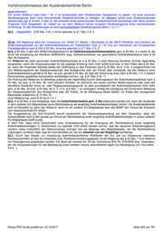 Verfahrenshinweise der Ausländerbehörde Berlin Ist der ausgestellte Reiseausweis für Flüchtlinge nicht mehr gültig, hält sich der Betroffene aber rechtmäßig im Zweitstaat auf oder hat sich dort rechtmäßig aufgehalten? Generell geht die Zuständigkeit gemäß § 11 des Anhangs zur GK auf den Zweitstaat über, wenn der Ausländer sich rechtmäßig im Gebiet dieses Staates niederlässt. Dies setzt einen von den Behörden genehmigten Aufenthalt mit dauerhafter Aufenthaltsperspektive voraus. Ein illegaler, vorübergehender - etwa zur Prüfung eines Asylantrags - oder nur tolerierter Aufenthalt, etwa weil aufenthaltsbeendende Maßnahmen nicht durchführbar sind, reicht zunächst nicht aus (so ausdrücklich Nr. 51.7.2. AufenthG-VwV). Lag ein genehmigter Aufenthalt vor, so besteht nach richtiger Auffassung auch dann kein Anspruch auf Neuerteilung des Titels gegenüber dem Erststaat, wenn der Zweitstaat diesen Titel rückwirkend zurücknimmt oder widerruft, etwa weil der Betroffene über Voraufenthalte in einem anderen Signatarstaat getäuscht hat. Ansonsten läge es ja in der Verfügungsgewalt des Zweitstaates, sich seiner völkerrechtlichen Verpflichtung einseitig zu entledigen. Hierfür spricht auch der Zweck des §11 des Anhangs der GK gerade Klarheit für die Zuständigkeit zwischen Erst- und Zweitstaat zu erhalten. Wollte man anders entscheiden, käme es zu ggf. jahrzehntelangen latenter Ersatzzuständigkeit des Erststaates und könnte der Zweitstaat durch rückwirkende Aufhebung des Status des Ausländers einseitig und ohne dass der Erststaat darauf Einfluss hat, diesen belasten. Auch wäre es in Täuschungsfällen unbillig, den Erststaat wieder in die Pflicht zu nehmen, weil die Behörden des Zweitstaates sich durch einen Ausländer haben täuschen lassen, bzw. den tatsächlichen Aufenthalt faktisch über Jahre hingenommen haben. Merke: Anders als bei Anwendung des EÜÜVF sind hier sehr wohl Fälle denkbar, in denen der Erststaat bei einem Auslandsaufenthalt des Flüchtlings seine Zuständigkeit verliert ohne dass der Zweitstaat, in dem der Flüchtling tatsächlich anwesend ist, zuständig wird. In diesen Fällen gilt allgemeines Aufenthaltsrecht. Auch bei Nichtsignatarstaaten erfolgt die Unterrichtung über den Übergang der Verantwortung formlos durch das aktenführende Sachgebiet an die zuständige Behörde des Erststaates. Anträge auf Wiederaufnahme sind auch hier durch R 3 zu stellen. Wird dem Antrag stattgegeben, wird R 3 dann den ggf. erforderlichen Bescheid fertigen. 51.8. Aufhebung der Aufenthaltserlaubnis nach § 38a § 51 Abs. 8 enthält entgegen der systematischen Stellung ein echtes Beteiligungserfordernis vergleichbar den Regelungen in § 72. Ausweislich des Wortlauts des § 51 Abs. 8 S. 1 ist dies vor jeder beabsichtigten Aufhebung einer Aufenthaltserlaubnis nach § 38 a Abs. 1 zu prüfen. Unter Aufhebung versteht man die gänzliche oder teilweise Beseitigung des Verwaltungsaktes. Damit ist vor der nachträglichen zeitlichen Beschränkung gem. § 7 Abs. 2 S. 2, einem Widerruf, einer Rücknahme oder Ausweisung über das Bundesamt für Migration und Flüchtlinge eine Stellungnahme des EU- Staates einzuholen, in dem der Betroffene über einen Status als Daueraufenthaltsberechtigter verfügt. Nach richtiger Auffassung sollte die Beteiligung selbst dann erfolgen, wenn lediglich die Verlängerung der Aufenthaltserlaubnis nach § 38 a nicht mehr in Betracht kommt, etwa weil der Lebensunterhalt nicht mehr gesichert ist oder es an anderen allgemeinen Erteilungsvoraussetzungen fehlt (Zum Verfahren vgl. § 91 c Abs. 2 sowie Ausführungen unter A.91.c.2.). Merke: Entgegen dem Wortlaut des § 51 Abs. 8 S. 1, letzter HS sollte die Beteiligung auch dann erfolgen, wenn – zumindest auch - die Abschiebung in den EU- Staat, in dem der Ausländer langfristig aufenthaltsberechtigt ist, in Betracht kommt. Nur so ist gewährleistet, dass zu einem späteren Zeitpunkt Verfahrensverzögerungen vermieden werden, wenn eine Rückführung dann doch in den Heimatstaat erfolgen soll. Für eine solche Verfahrenspraxis spricht im übrigen auch der Blick auf § 91 c Abs. 5 Nr. 3. Nach dieser Vorschrift soll die Konsultation auch die Möglichkeit bieten, Umstände mitzuteilen, die für oder gegen die Rückführung in den anderen Mitgliedsstaat sprechen. Kommt eine Abschiebungsanordnung gegen den Inhaber einer Aufenthaltserlaubnis nach § 38 a Abs. 1 in Betracht ist zuständige Behörde im Sinne des § 51 Abs. 8 S. 1 die Senatsverwaltung für Inneres und Sport. Die Stellungnahme ist gem. § 51 Abs. 8 S. 2 – etwa im Rahmen der Ermessensausübung - zu berücksichtigen, wenn sie nach den Umständen des Einzelfalls rechtzeitig eingeht. Hiervon ist nach Ablauf von sechs Wochen gerechnet ab Absendung unseres Schreibens an das Bundesamt für Migration und Flüchtlinge auszugehen. Allein wegen einer noch fehlenden Stellungnahme muss die Entscheidung ausweislich der Gesetzesbegründung daher nicht auf unabsehbare Zeit aufgeschoben werden. Ergeht sodann ein aufenthaltsbeendender Bescheid mit Abschiebungsandrohung so ist der Mitgliedstaat, in dem der Ausländer daueraufenthaltsberechtigt ist, über das Bundesamt für Migration und Flüchtlinge zu unterrichten. Dies ergibt sich aus § 91 c Abs. 3 (zu den Einzelheiten vgl. A.91c.3). 51.8a. Unterrichtungspflicht bei Annullierung oder Aufhebung eines Visums Art. 34 des Visakodex enthält die Verpflichtung, im Falle von Annullierung oder Aufhebung eines Visums die Behörden des ausstellenden Staates zu unterrichten. Abs. 8a konkretisiert das Verfahren der Unterrichtung und legt fest, dass die Unterrichtung über das BAMF erfolgt, sofern die Entscheidungen durch die Ausländerbehörde getroffen werden. Adressat ist das Referat 414 des BAMF als Nationale Kontaktstelle für die EU-Richtlinien. Hinsichtlich der Einzelheiten der Mitteilung fehlt es bisher an einer Regelung. 51.9. Erlöschen der Erlaubnis zum Daueraufenthalt-EG Abs. 9 enthält eine abschließende Sp