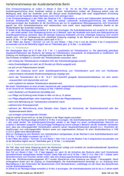 Verfahrenshinweise der Ausländerbehörde Berlin Eine Ermessensregelung ist zudem in Absatz 6 Satz 1 Nr. 1b) für die Fälle aufgenommen, in denen die Ausbildungseinrichtung einen Ausländer bedingt zu einem Vollzeitstudium zulässt, die Zulassung jedoch unter die Bedingung stellt, dass der Ausländer zuvor den Besuch eines Studienkollegs oder einer vergleichbaren Einrichtung nachweist und der Ausländer diesen Nachweis (noch) nicht erbringen kann. In der Ermessenabwägung in den Fällen des Absatzes 6 Nr. 1 Buchstaben a) und b) wird insbesondere berücksichtigt, ob konkrete Anhaltspunkte dafür bestehen, dass die bedingt zulassende Ausbildungseinrichtung das individuelle Leistungsvermögen des Ausländers für die Durchführung des von ihr angebotenen Bildungsprogramms nicht hinreichend geprüft hat. Eine Aufenthaltserlaubnis wird insbesondere nicht erteilt, wenn begründete erhebliche Zweifel an der Studierfähigkeit des Ausländers bestehen. Im Etikett ist als Rechtsgrundlage einheitlich § 16 Abs. 6 einzutragen. Die Aufenthaltserlaubnis soll zunächst für nicht mehr als 1 Jahr erteilt werden. Eine Verlängerung kommt nur in Betracht, wenn der Ausländer auch durch eine Stellungnahme der Ausbildungseinrichtung nachweist, dass die bedingte Zulassung fortbesteht und eine unbedingte Zulassung noch erreicht werden kann. Wird zur Verlängerung eine unbedingte Zulassung vorgelegt, ist der Wechsel in eine Aufenthaltserlaubnis nach § 16 Abs. 1 in der Regel zuzulassen (siehe oben A.16.1.). In den Fällen des Satzes 1 Nummer 1a) und 1b) sind Absatz 1 Satz 2 bis 4 und die Absätze 2 bis 5 entsprechend anzuwenden und ist der Betroffene folglich wie ein Titelinhaber gem. § 16 Abs. 1 zu behandeln. 16.6.1.1c. Teilzeitstudium Der Gesetzgeber lässt mit § 16 Abs. 6 S. 1 Nr. 1 c ausdrücklich ein Teilzeitstudium zu. Der gleichzeitig geforderte Hauptaufenthaltszweck des Studiums, der bislang ein Vollzeitstudium voraussetzte, ist entsprechend zu modifizieren. Die Erteilung und Verlängerung steht im pflichtgemäßen Ermessen der Behörde. Das Ermessen ist lediglich zu Gunsten des Teilzeitstudenten auszuüben, wenn der Umfang des Teilzeitstudiums mindestens 50% des Vollzeitstudienganges erreicht, keine Erwerbstätigkeit von mehr als 20 Stunden pro Woche ausgeübt wird, es sich um ein Präsenzstudium handelt neben der Zulassung durch seine Ausbildungseinrichtung zum Teilzeitstudium auch eine vom Fachberater unterschriebene individuelle Studienverlaufsplanung vorgelegt wird, durch das Teilzeitstudium die in Nr.: 16.2.7. VwV-AufenthG geregelte Gesamtaufenthaltsdauer von zehn Jahren voraussichtlich nicht überschritten wird und nicht zusätzlich ein weiteres Teilzeitstudium absolviert wird. Bei einem Teilzeitstudium an einer privaten Hochschule oder vergleichbaren Ausbildungseinrichtung ist zusätzlich zu prüfen, ob ein Grund für ein Teilzeitstudium analog § 22 Abs. 4 BerlHG vorliegt: wenn Studenten und Studentinnen berufstätig sind, zur Pflege und Erziehung eines Kindes im Alter von bis zu 10 Jahren, zur Pflege pflegebedürftiger naher Angehöriger im Sinne des Pflegezeitgesetzes, wenn eine Behinderung ein Teilzeitstudium erforderlich macht, während einer Schwangerschaft, während der Wahrnehmung eines Mandats eines Organs der Hochschule, der Studierendenschaft oder des Studierendenwerks Berlin, aus sonstigen schwerwiegenden Gründen. Liegt ein solcher Grund nicht vor, ist das Ermessen in der Regel negativ auszuüben. Im Etikett ist als Rechtsgrundlage einheitlich § 16 Abs. 6 einzutragen. Die Aufenthaltserlaubnis soll zunächst für mindestens 1 Jahr erteilt werden. Die Ausbildungseinrichtungen werden in der Regel von einem vorübergehenden Abschnitt von zunächst 2 Semestern ausgehen. Eine großzügige Verlängerung kommt solange in Betracht, wie der Ausländer nachweisen kann, dass das ordnungsgemäße Teilzeitstudium weiterhin seinen Hauptaufenthaltszweck darstellt (s.o.). Hinsichtlich der Ausführungen zum ordnungsgemäßen Studium sowie zum angemessenen Zeitraum für einen Studienabschluss in VAB A.16.2.4. gelten keine Besonderheiten. Wird zur Verlängerung eine Rückkehr zum Vollzeitstudium nachgewiesen, ist der Wechsel in eine Aufenthaltserlaubnis nach § 16 Abs. 1 in der Regel zuzulassen (vgl. A.16.1.). In den Fällen des Satzes 1 Nummer 1c) sind Absatz 1 Satz 2 bis 4 und die Absätze 2 bis 5 entsprechend anzuwenden und ist der Betroffene folglich wie ein Titelinhaber gem. § 16 Abs. 1 zu behandeln. 16.6.1.2. Studienvorbereitende Sprachkurse ohne Zulassung Der Fall, dass noch keine Zulassung durch die Hochschule vorliegt und zunächst ein studienvorbereitender Sprachkurs besucht werden soll, wird in Absatz 6 Satz 1 Nr. 2 geregelt. Kein Fall von Absatz 6 Satz 1 Nr. 2 liegt dagegen vor, wenn für die Aufnahme des Studiums allein noch hinreichende Sprachkenntnisse nachgewiesen werden müssen. Diese Fälle sind von § 16 Abs. 1 Satz 2 i.V.m. Satz 3 Nr. 1 erfasst, wenn Sprachkenntnisse noch erworben werden sollen, aber eine Zulassungsentscheidung bereits ergangen ist. Durch das Richtlinienumsetzungsgesetz 2017 wurden Sprachkurse ohne Zulassung aus Absatz 1 herausgelöst. Damit einhergehend ändert sich der Zugang zur Erwerbstätigkeit. Die Aufenthaltserlaubnis berechtigt nur zur Ausübung einer Beschäftigung in den Ferienzeiten der Sprachschulen (nicht Semesterferien), unabhängig von der Dauer des Sprachkurses und der Aufenthaltserlaubnis. Im Etikett ist als Rechtsgrundlage einheitlich § 16 Abs. 6 einzutragen. Die Aufenthaltserlaubnis soll für bis zu 2 Jahren erteilt Dieses PDF wurde erstellt am: 08.08.2017 Seite 126 von 786