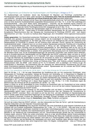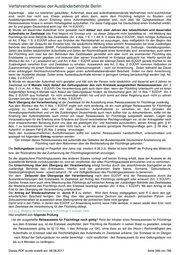 Verfahrenshinweise der Ausländerbehörde Berlin Asylantrags - oder nur tolerierter/ geduldeter Aufenthalt, etwa weil aufenthaltsbeendende Maßnahmen nicht durchführbar sind, reicht hier nicht aus. Etwas anderes gilt allein dann, wenn dem Flüchtling lediglich zu Studien- und Ausbildungszwecken (durch Erteilung eines Aufenthaltstitels) gestattet wird, sich über die Gültigkeitsdauer des Reiseausweises hinaus in seinem Hoheitsgebiet aufzuhalten. Für diese Fallgruppe hat Deutschland einen Vorbehalt erklärt, der für und gegen Deutschland wirkt (vgl. Art. 14 EÜÜVF). 2) Wurde ein dauernder Aufenthalt nicht gestattet nach Ablauf von zwei Jahren des tatsächlichen und dauernden Aufenthalts im Zweitstaat (die Frist beginnt mit Einreise und - so dieser Zeitpunkt nicht feststellbar ist - mit Meldung des Flüchtlings bei einer Behörde des Zweitstaats (Art. 2 Abs. 1 S. 1 1 Alt. S. 2 sowie Abs.2 EÜÜVF). Nach richtiger Auffassung ist Art. 2 Abs. 1 S. 2 EÜÜVF schon aus Gründen der Rechtsklarheit so auszulegen, dass maßgeblich für den Beginn des Fristlaufs allein der Zeitpunkt der Einreise bzw. die tatsächliche Meldung eines schlicht Anwesenden bei einer zuständigen Behörde des Zweitstaates (BAMF, Polizeidienststelle, Grenz- oder Ausländerbehörde) ist. Duldungs-, Gestattungszeiten, Zeiten des bloßen tatsächlichen Aufenthalts und Zeiten der Rechtmäßigkeit eines Aufenthalts sind anrechenbar, auch wenn der Flüchtling sich zwar bei den Behörden des Zweitstaates gemeldet sich aber nicht als anerkannter Flüchtling des Erststaates zu erkennen gegeben und bewusst über seinen Voraufenthalt im Erststaat getäuscht hat. Hierfür spricht der Wortlaut der Art. 1 d („anwesend ist“) und Art. 2 Abs. 1 EÜÜVF sowie der alleinige Zweck des EÜÜVF gerade Klarheit für die Zuständigkeit zwischen Erst- und Zweitstaat zu erhalten. Ausweislich des Art. 2 Abs. 2 EÜÜVF kommen Haftzeiten im Zusammenhang mit einem Strafverfahren – auch Untersuchungshaft – nicht zur Anrechnung. Zeiten während der Dauer eines anhängigen Rechtsschutzverfahrens gegen einen aufenthaltsbeendenden Bescheid finden nur dann Anrechnung, wenn der Ausländer obsiegt. Zeiten eines Auslandsaufenthalts können in geringem Umfang berücksichtigt werden (vgl. Art. 2 Abs. 2 d EÜÜVF). 3) Wurde ein dauernder Aufenthalt nicht gestattet und hält sich die Person nicht tatsächlich und dauernd seit 2 Jahren im Zweitstaat auf 6 Monate nach Ablauf der Geltungsdauer des vom Erststaat ausgestellten Reisesausweises (Art. 2 Abs. 3 i.V.m. Art. 4 Abs. 1 EÜÜVF) Die Verantwortung geht auch dann über, wenn der Flüchtling untertaucht und so einen fristgemäßen Antrag 6 Monate nach Ablauf der Geltungsdauer hindert, da Deutschland gem. Art 14 Abs. 1 EÜÜVF Art. 4 Abs. 2 EÜÜVF qua Vorbehalt für nicht anwendbar erklärt hat und sich somit auf diese Regelung auch nicht zu seinen Gunsten berufen kann (vgl. auch Art. 14 Abs. 3 EÜÜVF). Nach Übergang der Verantwortung ist der Zweitstaat für die Ausstellung eines Reiseausweises für Flüchtlinge zuständig. Aus dem Wortlaut des Art. 5 Abs. 1 EÜÜVF ergibt sich nicht eindeutig, ob ein noch gültiger Reiseausweis für Flüchtlinge ungültig zu machen oder aber mit dem deutschen Aufenthaltstitel zu versehen ist. Aus Gründen der Verwaltungseinheitlichkeit und um die Zuständigkeit Deutschlands auch nach außen klar zu dokumentieren, sollte mit der Erteilung des Aufenthaltstitels auch immer ein neuer Reiseausweis für Flüchtlinge ausgestellt werden. Liegen die Voraussetzungen für die Erteilung einer Erlaubnis auf Grund verschiedener Rechtsgrundlagen vor, ist der Antragsteller nach einer entsprechenden Beratung durch uns über die jeweiligen Vor- und Nachteile aufzufordern, seinen Antrag gem. § 81 Abs. 1 zu konkretisieren. Kommt er dem nicht nach, so ist die jeweils günstigste Rechtsgrundlage gem. § 59 Abs. 3 AufenthV- in diesem Fall § 25 Abs. 2 analog - einzutragen. Nach den bundeseinheitlichen Ausfüllhinweisen sollte ein solcher Reiseausweis handschriftlich, unterschrieben und gesiegelt mit folgendem Eintrag versehen werden: "Der Inhaber dieses Reiseausweises hat außerhalb des Gebietes der Bundesrepublik Deutschland Anerkennung als Flüchtling nach dem Abkommen über die Rechtsstellung der Flüchtlinge gefunden." Die Geltungsdauer beträgt im Regelfall drei Jahre (vgl. insofern A.26.3.2). Weiter ist beim BAMF die Prüfung des Widerrufs bzw. der Rücknahme der der Zuerkennung der Flüchtlingseigenschaft anzuregen. So der abgelaufene Flüchtlingsausweis des anderen Staates vorliegt und keinen Eintrag erhält, dass der Ausweis an die ausstellende Behörde zurückzusenden ist, sind wir verpflichtet, den alten Flüchtlingsausweis einzuziehen und zu vernichten. Die Unterrichtung über den Übergang der Verantwortung erfolgt formlos durch das aktenführende Sachgebiet an die zuständige Behörde des Erststaates. Hierfür sind der genannten Stelle Name, Vorname, Geburtsdatum, Staatsangehörigkeit, sowie - soweit bekannt - Nr. und Gültigkeitsdauer des Flüchtlingsausweises zu benennen. Vor dem Zeitpunkt des Übergangs der Verantwortung nach dem EÜÜVF wird der Reiseausweis durch die Auslandsvertretungen des Erststaates im Zweitstaat auf Antrag des Flüchtlings verlängert oder erneuert (Art. 3 EÜÜVF). Darüber hinaus kann auch ohne Mitwirkung des Flüchtlings auf einfachen Antrag der zuständigen Behörde des Zweitstaates die Wiederaufnahme des Flüchtlings durch den Erststaat beantragt werden (Art. 4 Abs. 1 EÜÜVF). Mit dem Antrag ist die Frist für den Übergang der Verantwortung unterbrochen. Der Antrag auf Wiederaufnahme ist durch R 3 zu stellen. Wird dem Antrag stattgegeben, wird R 3 dann den ggf. erforderlichen Bescheid fertigen. Der Weg über das gemeinsame Zentrum der deutsch- polnischen Polizei- und Zollzusammenarbeit ist ausweislich einer Stellungnahme der polnischen Seite nicht gangbar. Damit sind in den Fällen, in denen das EÜÜVF zur Anwendung kommt, keine Fälle den