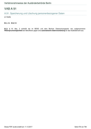 Verfahrenshinweise der Ausländerbehörde Berlin VAB A 91 A.91. Speicherung und Löschung personenbezogener Daten (2. ÄndG) 91.1. bis 91.2 frei 91.3. § 91 Abs. 3 schließt die im BDSG und dem Berliner Datenschutzgesetz neu aufgenommene Widerspruchsmöglichkeit der Betroffenen gegen eine automatisierte Datenverarbeitung für das Ausländerrecht aus. Dieses PDF wurde erstellt am: 11.12.2017 Seite 476 von 794