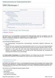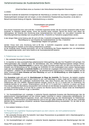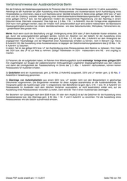 Verfahrenshinweise der Ausländerbehörde Berlin Bei der Erteilung der Niederlassungserlaubnis für Personen über 24 ist der Reiseausweis somit für 10 Jahre auszustellen. Allerdings ist der Ausländer bei jeder Ausstellung eines Reiseausweises und Ausweisersatzes durch Aushändigung eines Hinweisblattes zu informieren, dass er zum Nachweis seiner Identität fortlaufend im Besitz eines gültigen DDV bzw. LP sein muß und die Erteilung und/oder Verlängerung einer Aufenthaltserlaubnis/Niederlassungserlaubnis zwingend den Besitz eines gültigen DDV/LP bzw. bei hier geborenen Kindern die entsprechende Registrierung und den Nachtrag in einem Dokument eines Elternteils voraussetzt. Dies folgt aus § 5 Abs. 1 Nr. 1 a AufenthG. Aus der Vorlage eines abgelaufenen DDV kann nicht gefolgert werden, dass der Inhaber nicht zwischenzeitlich auch eine andere insbesondere die libanesische Staatsangehörigkeit erworben hat. Andere Identitätsnachweise - wie etwa Geburtsurkunden, Wehrpässe, Führerscheine etc. - gewährleisten dies gerade nicht. Merke: Auch wenn durch die Beschaffung und ggf. Verlängerung eines DDV oder LP dem Ausländer Kosten entstehen, die ggf. durch die Leistungsbehörden getragen werden, kommt ein Absehen von der Gebühr für die Ausstellung eines Reiseausweises gem. § 48 Nr. 1 a AufenthV etwa gem. § 53 Abs. 1 2. HS oder Abs. 2 AufenthV vor dem Hintergrund der angespannten Haushaltslage und der Möglichkeit einen Ausweisersatz erhalten zu können, nicht in Betracht (vgl. hierzu B.AufenthV.53). Bei Ausstellung eines Ausweisersatzes ist dagegen der Gebührenbefreiungstatbestand des § 53 Abs. 1 Nr. 8 AufenthV zu beachten. In jedem Fall ist das gültige DDV bzw. LP bei Aushändigung eines Reiseausweises dem Besitzer zu belassen. Eine Kopie des DDV bzw. des LP ist zur Akte zu nehmen. Gültige Titeletiketten im DDV - insbesondere eine NE - sind ungültig zu machen. 2) Personen, die wir aufgefordert haben, im Rahmen ihrer Mitwirkungspflicht durch erstmalige Vorlage eines gültigen DDV ihre Zugehörigkeit zur Gruppe der palästinensischen Volkzugehörigen ungeklärter Staatsangehörigkeit aus dem Libanon und damit die Unmöglichkeit der Passbeschaffung im Sinne des § 5 Abs. 1 AufenthV nachzuweisen, können keinen Reiseausweis für Ausländer erhalten. 3) Geduldeten wird ein Ausweisersatz gem. § 48 Abs. 2 AufenthG ausgestellt. DDV und LP werden gem. § 50 Abs. 5 AufenthG in Verwahrung genommen. 4) Überträge von Aufenthaltstiteln aus einem DDV bzw. LP werden nicht von den Bürgerämtern in gleichartige Dokumente vorgenommen. Die Bürgerämter verweisen für diese Aufgabe ausnahmslos an die Ausländerbehörde. Bei Vorsprache gelten die Ausführungen unter 1) entsprechend. Den Betroffenen ist gem. §§ 5, 6 Nr. 1 bzw. Nr. 2 AufenthV ein Reiseausweis für Ausländer nach dem üblichen Verfahren auszustellen, so nicht ausdrücklich erklärt wird, auf die Ausstellung eines Reiseausweises verzichten zu wollen. Dann wird der Titel in einen Ausweisersatz übertragen. Bei Beziehern von Leistungen nach dem SGB II bzw. XII oder dem AsylbLG ist auf die Gebühren für die Ausstellung eines Ausweisersatzes bzw. des Übertrags gem. § 53 Abs. 1 Nr. 7 und 8 AufenthV zu verzichten. Für die Ausstellung eines Reiseausweises wird die Gebühr ausnahmslos erhoben. Dieses PDF wurde erstellt am: 11.12.2017 Seite 746 von 794